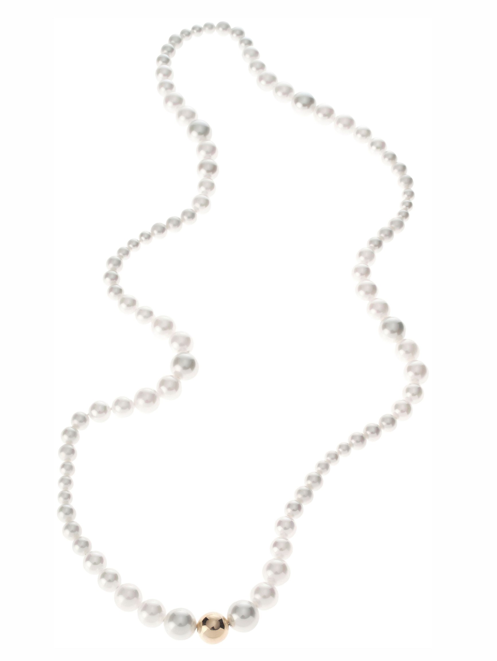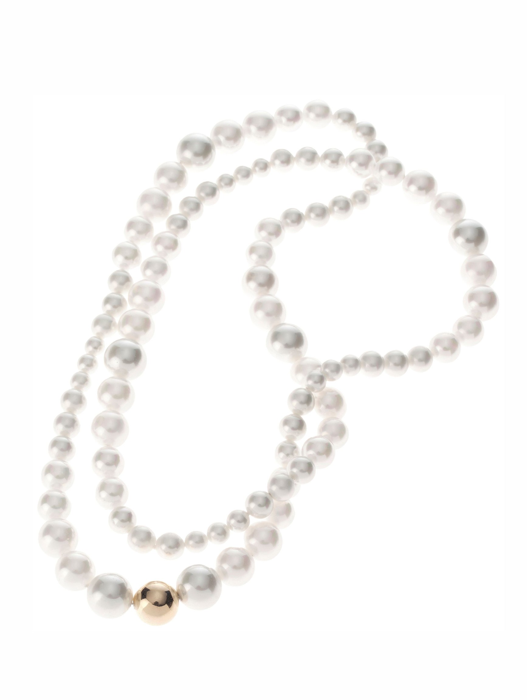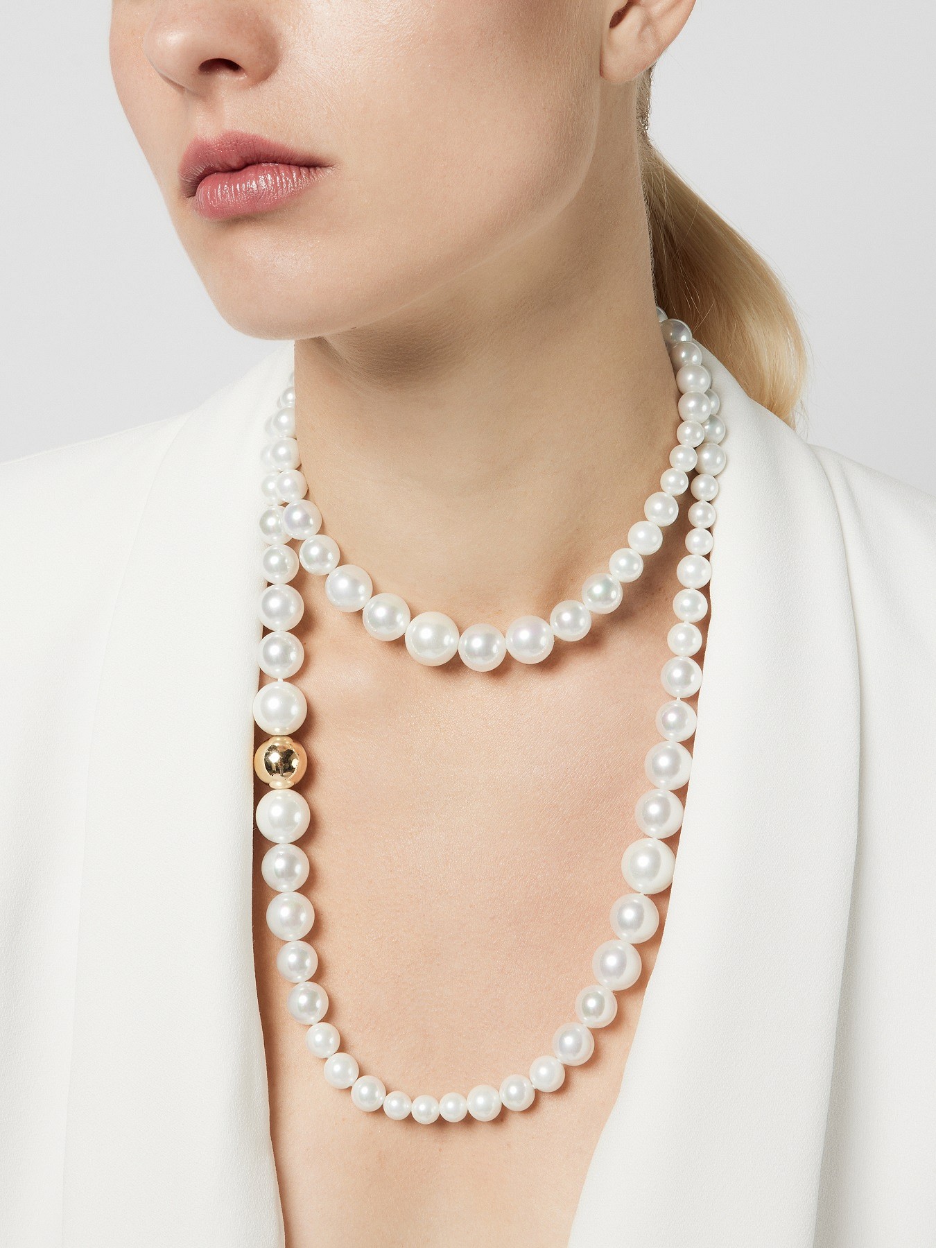 Κολιέ με ιβουάρ πέρλες και χρυσό σε διάφορα μεγέθη.