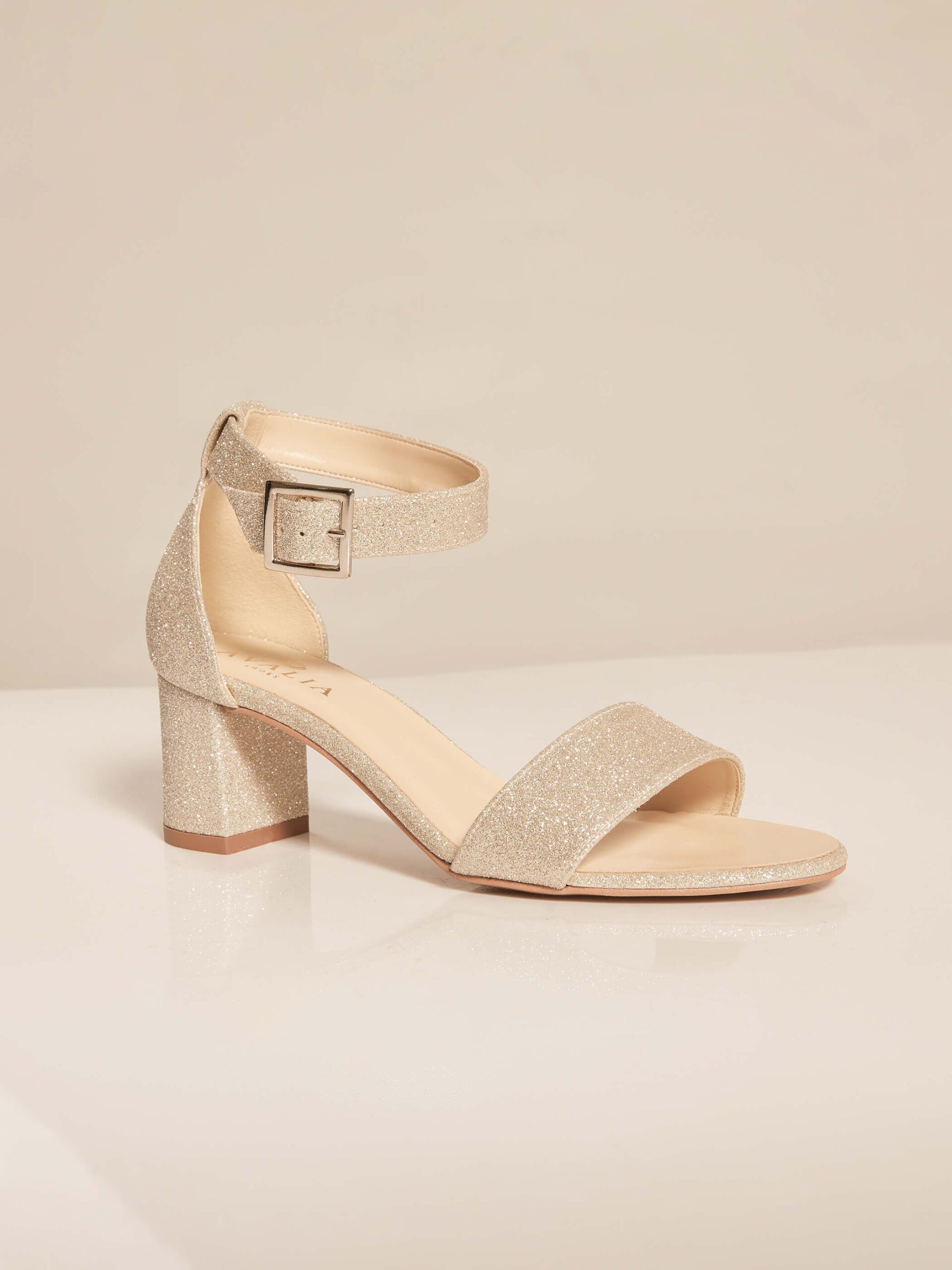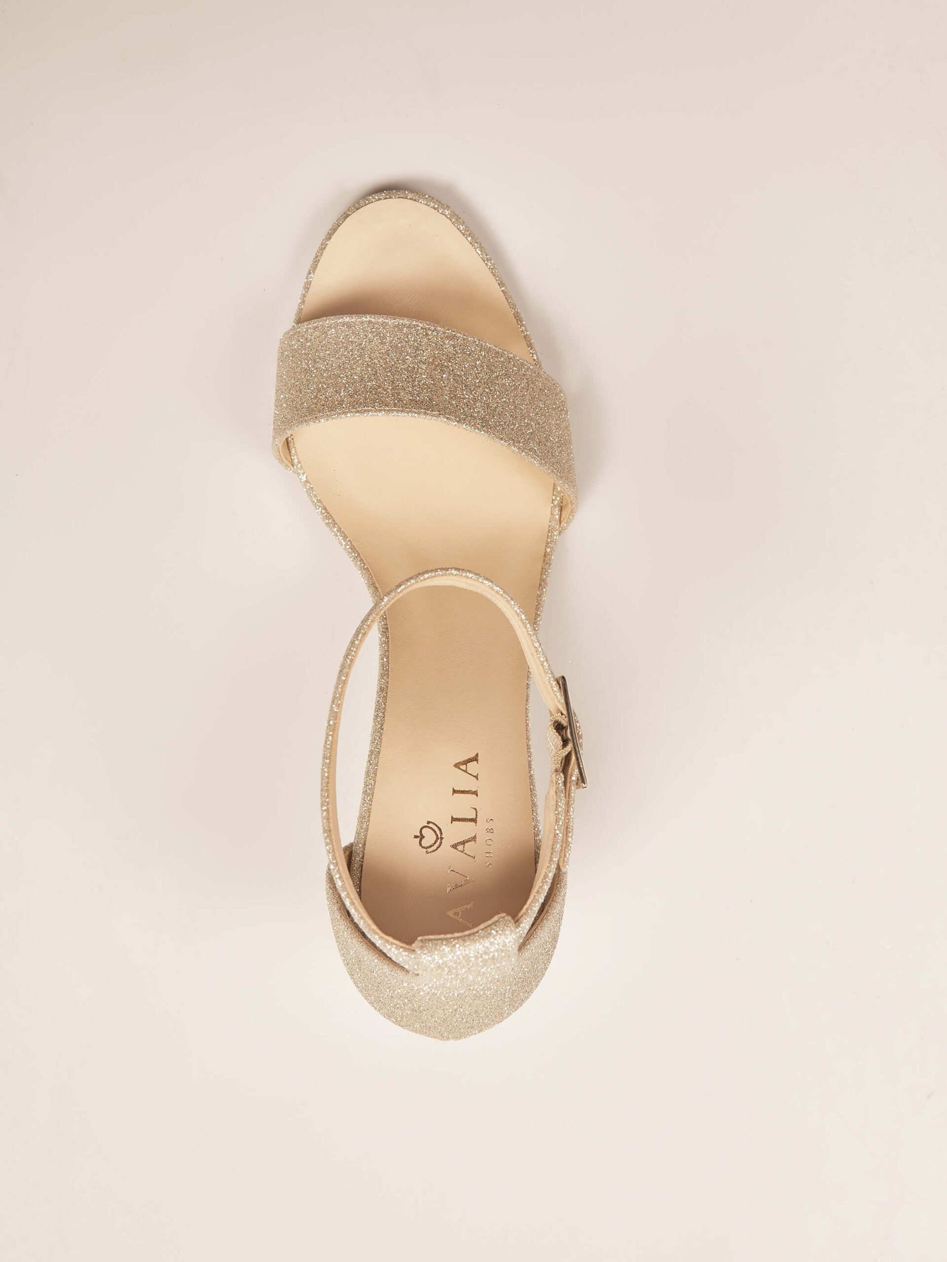 Νυφικά πέδιλα από τεχνόδερμα σε χρυσό χρώμα με γκλίτερ