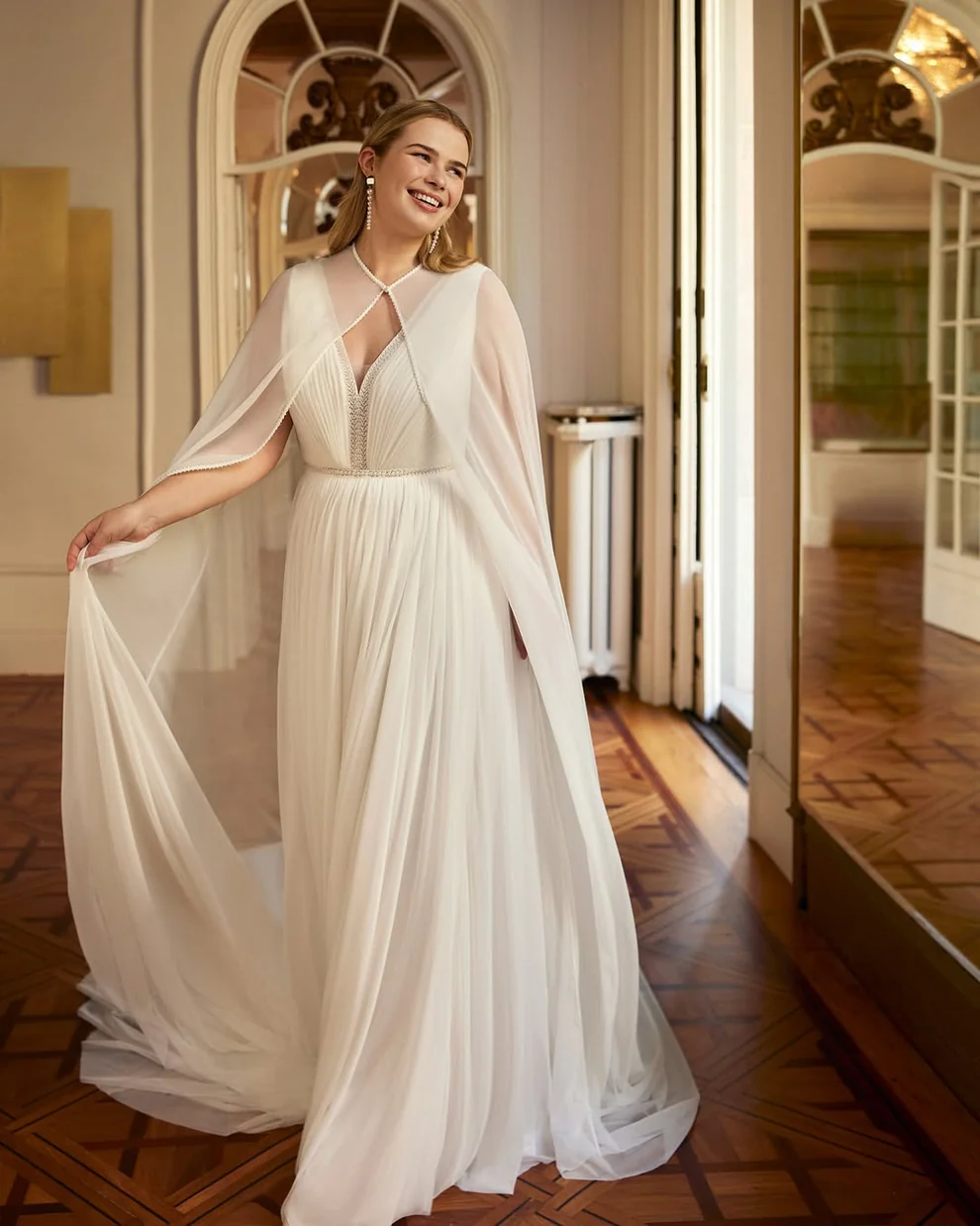 Αέρινο νυφικό σε Α-Γραμμή με αποσπώμενη κάπα