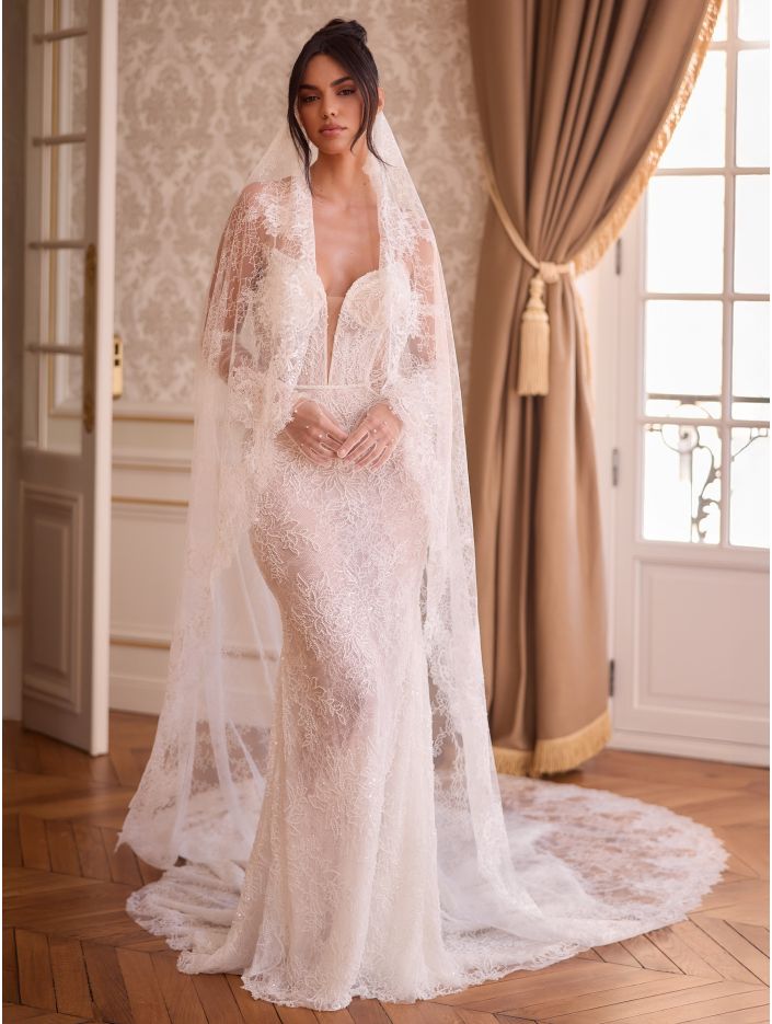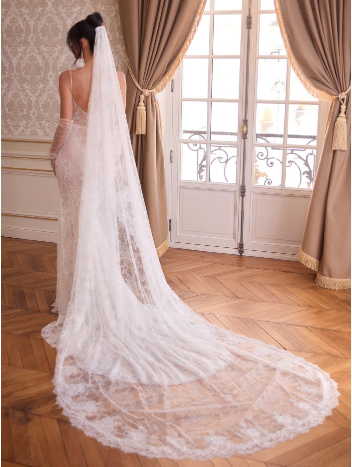 Νυφικό πέπλο από σαντιγί (Chantilly) δαντέλα