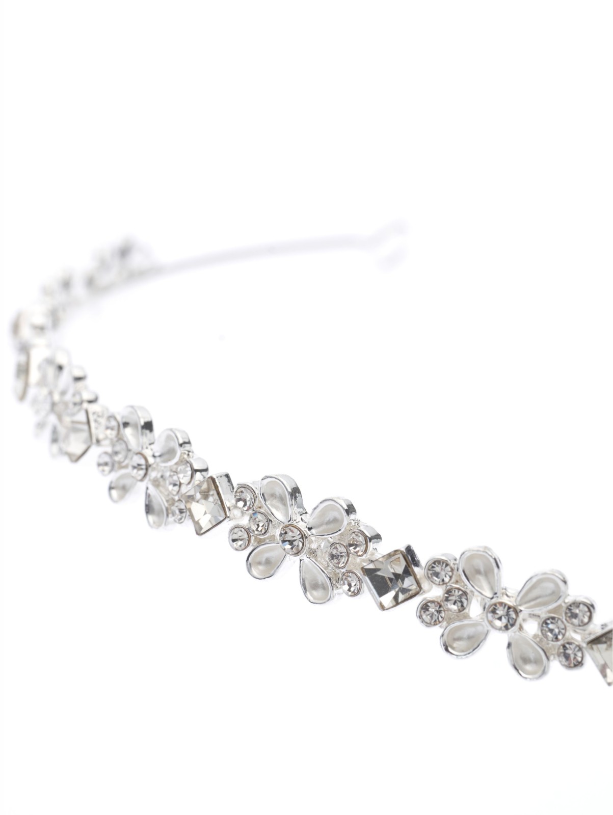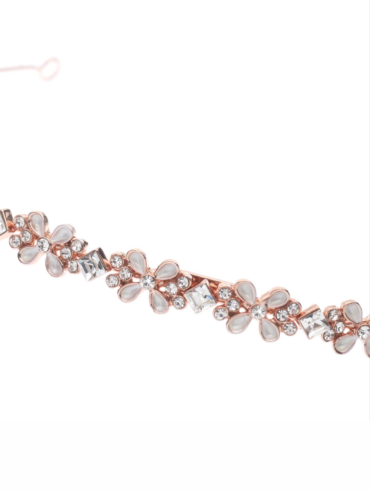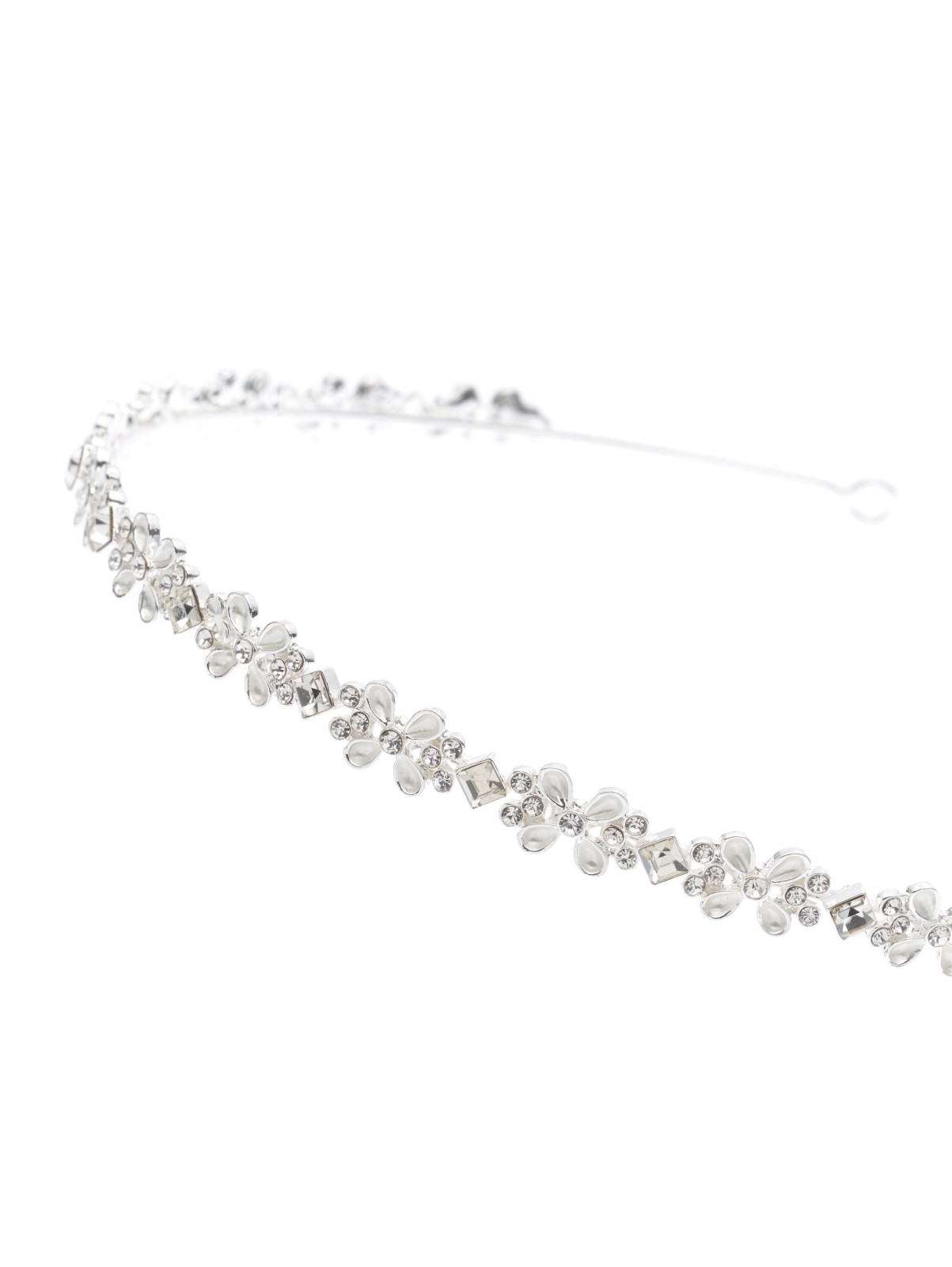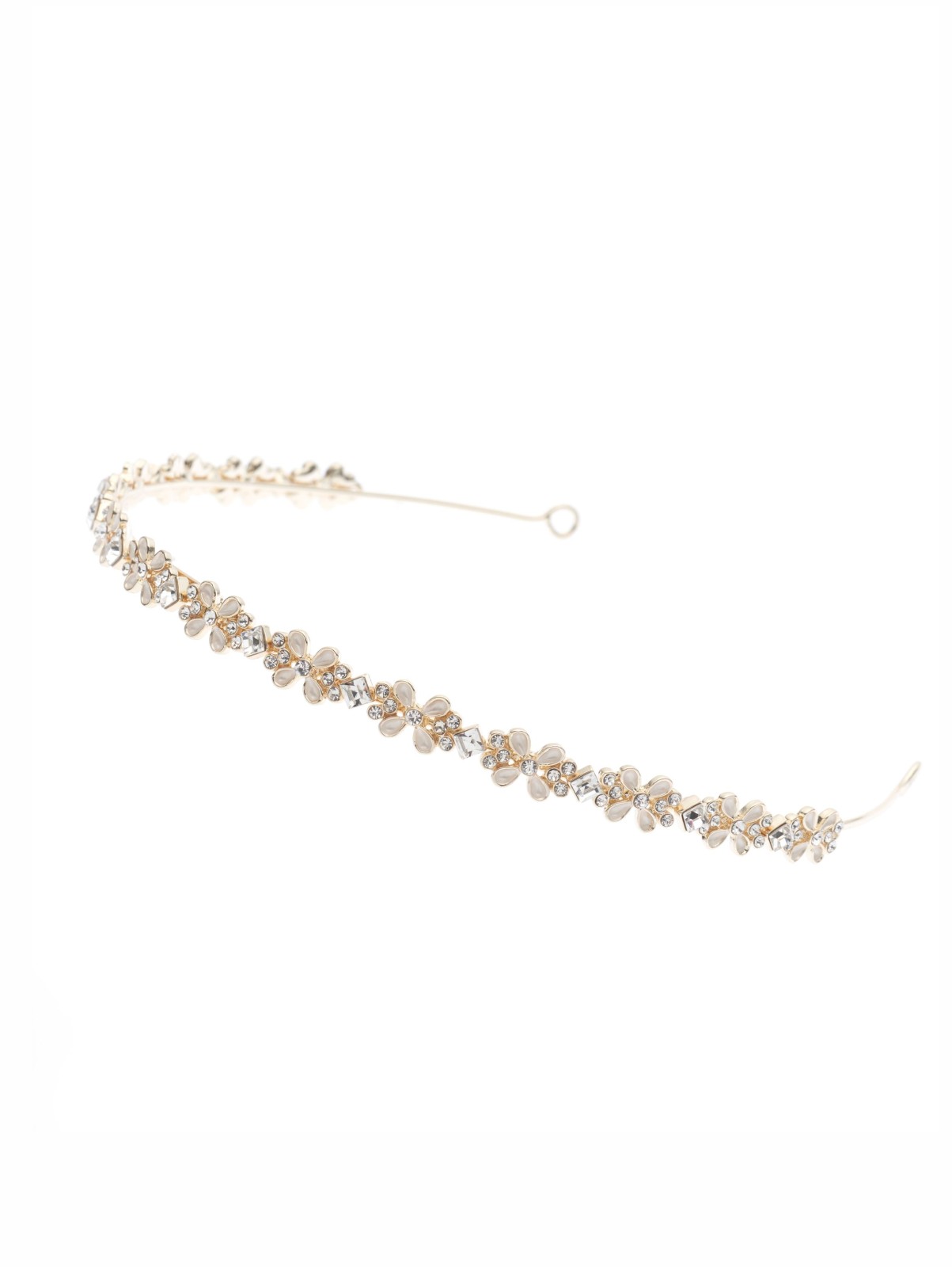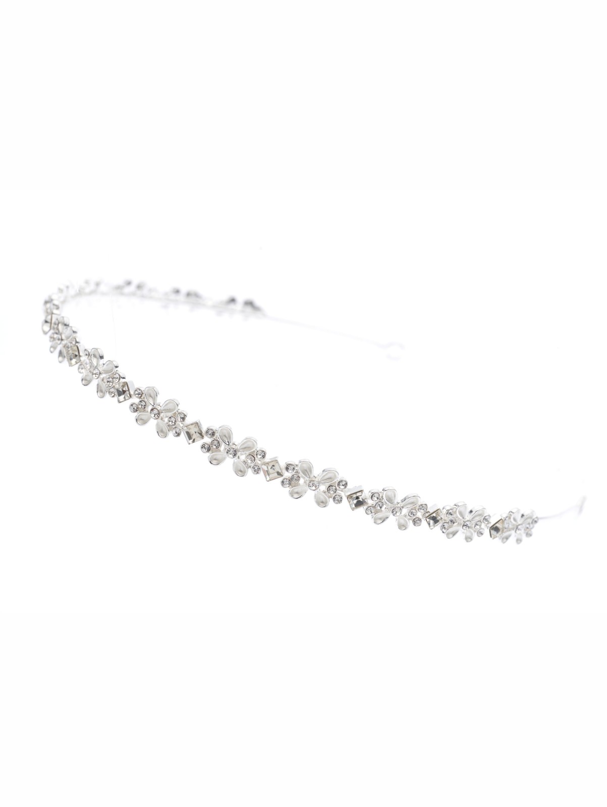 Νυφική στέκα σε μεταλλική βάση με μοτίβο λουλουδιών και ρόμβων σε συνδυασμό από στρας , διαθέσιμη σε τρείς αποχρώσεις