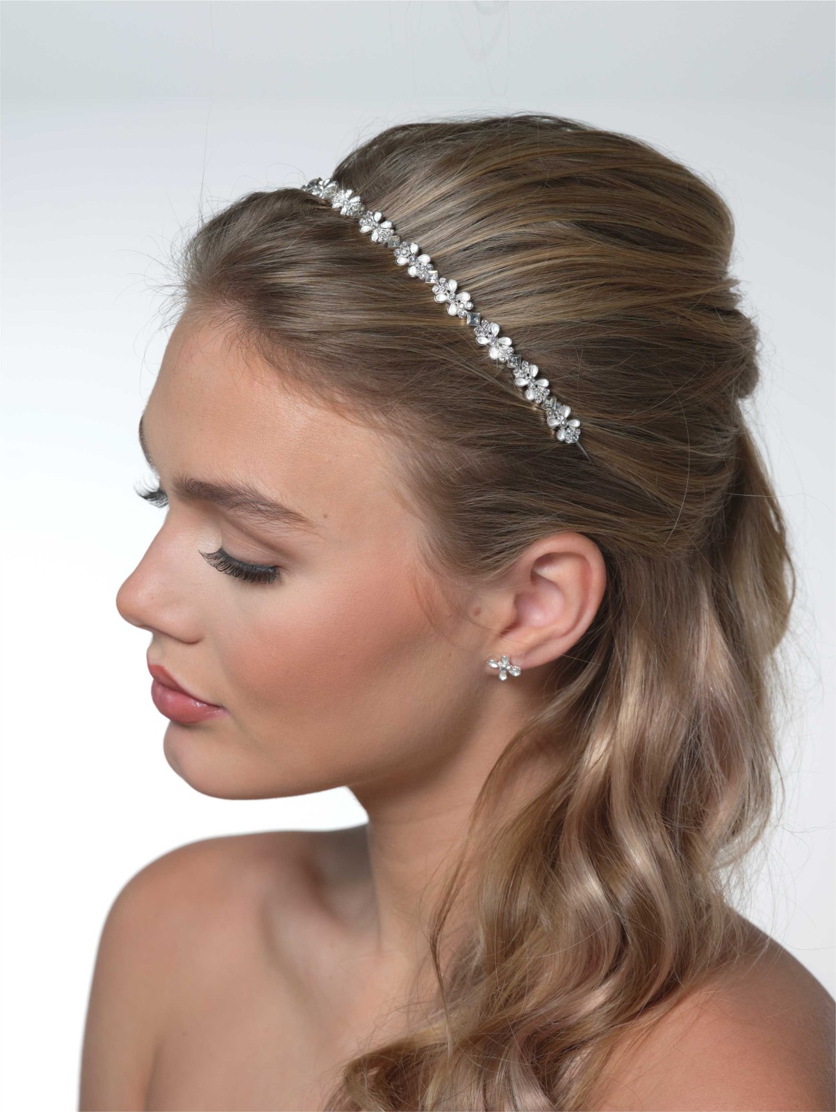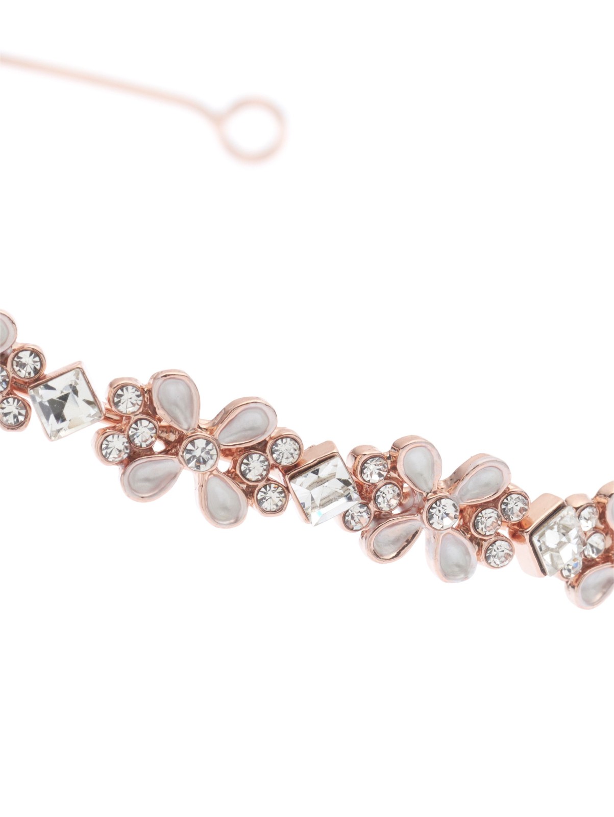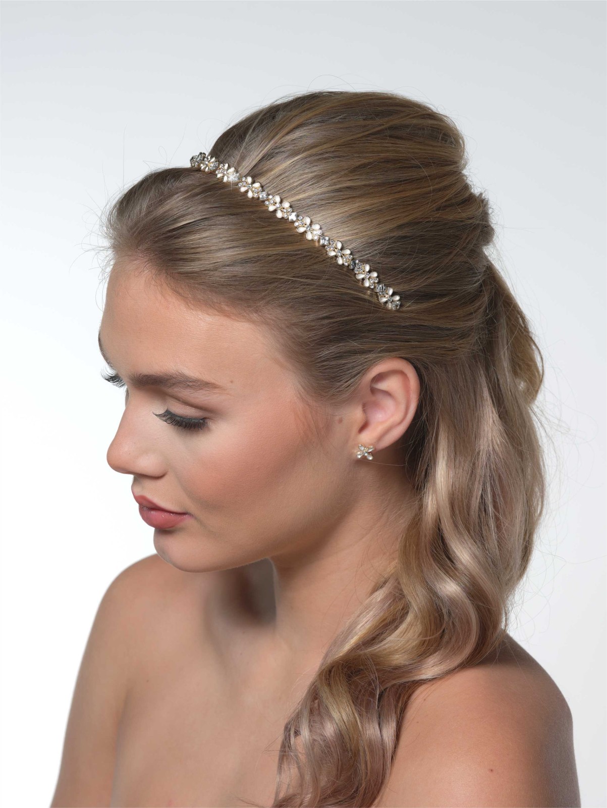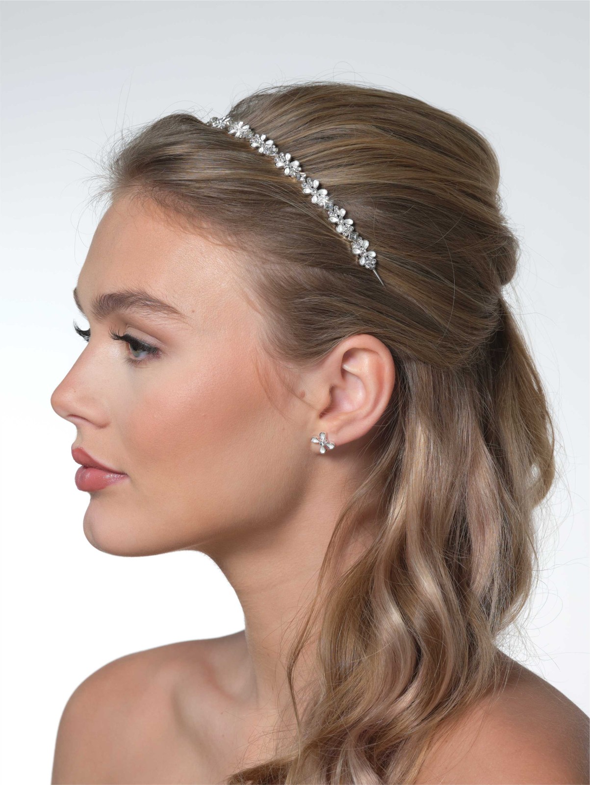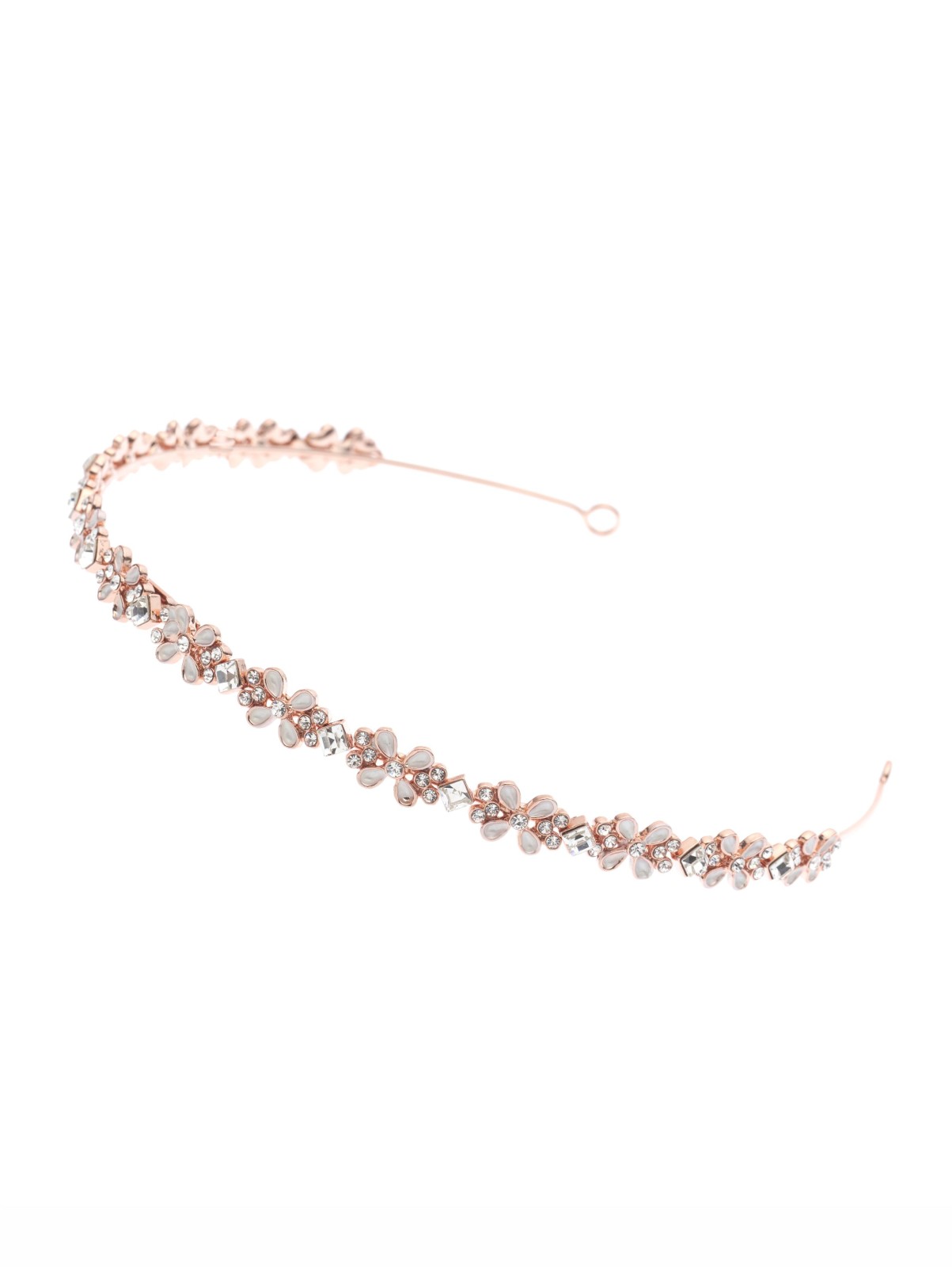 Νυφική στέκα σε μεταλλική βάση με μοτίβο λουλουδιών και ρόμβων σε συνδυασμό από στρας , διαθέσιμη σε τρείς αποχρώσεις