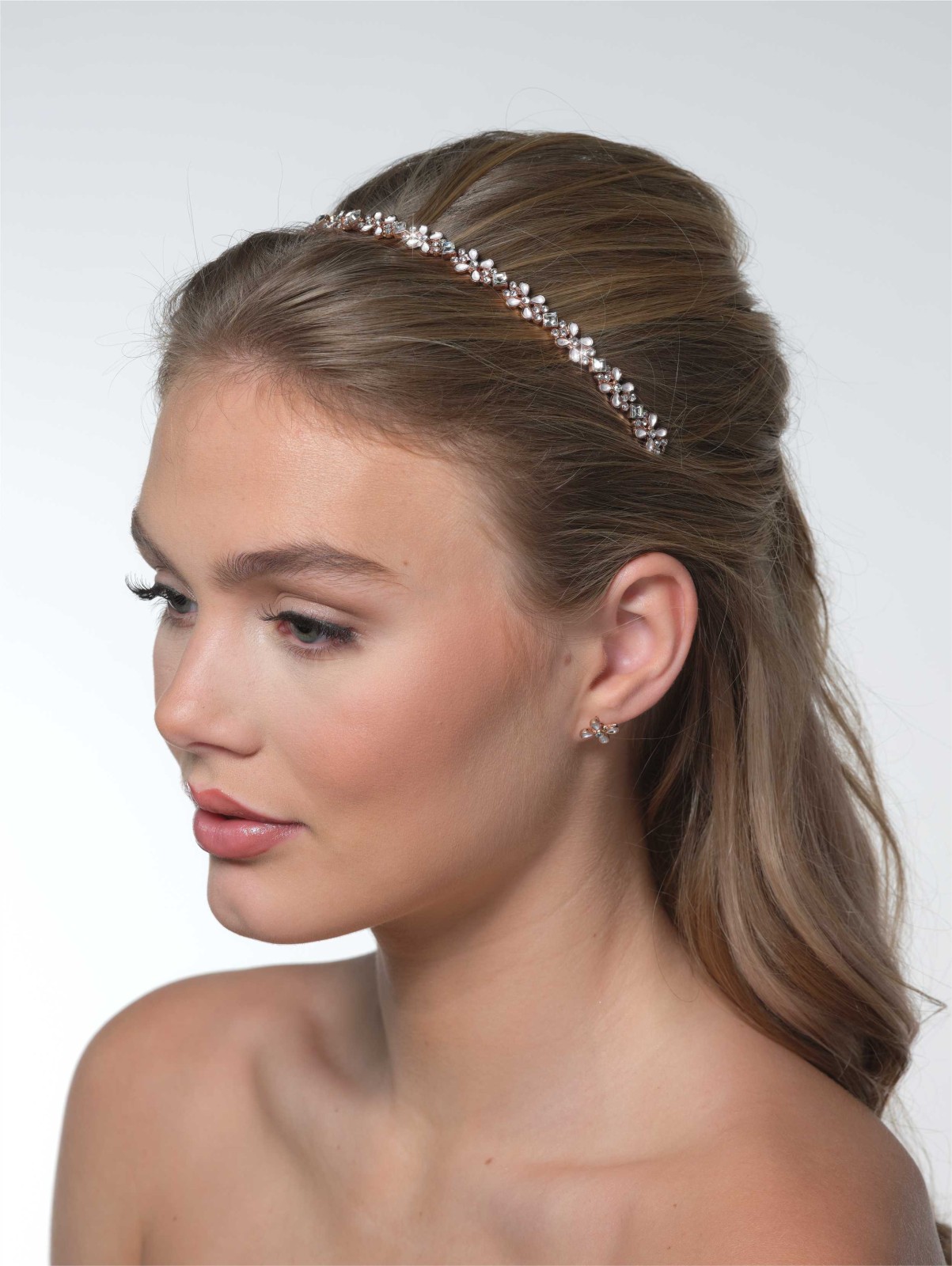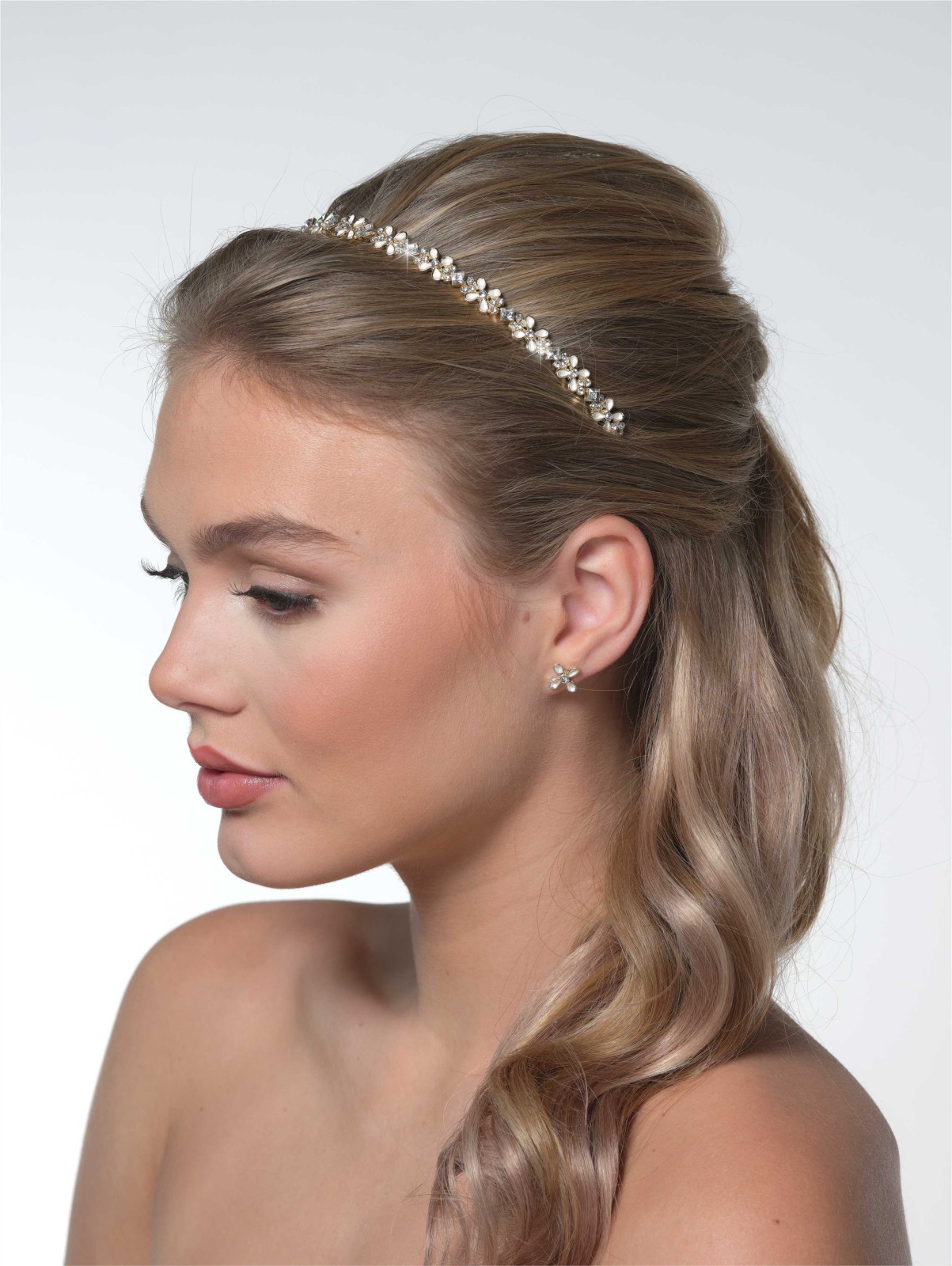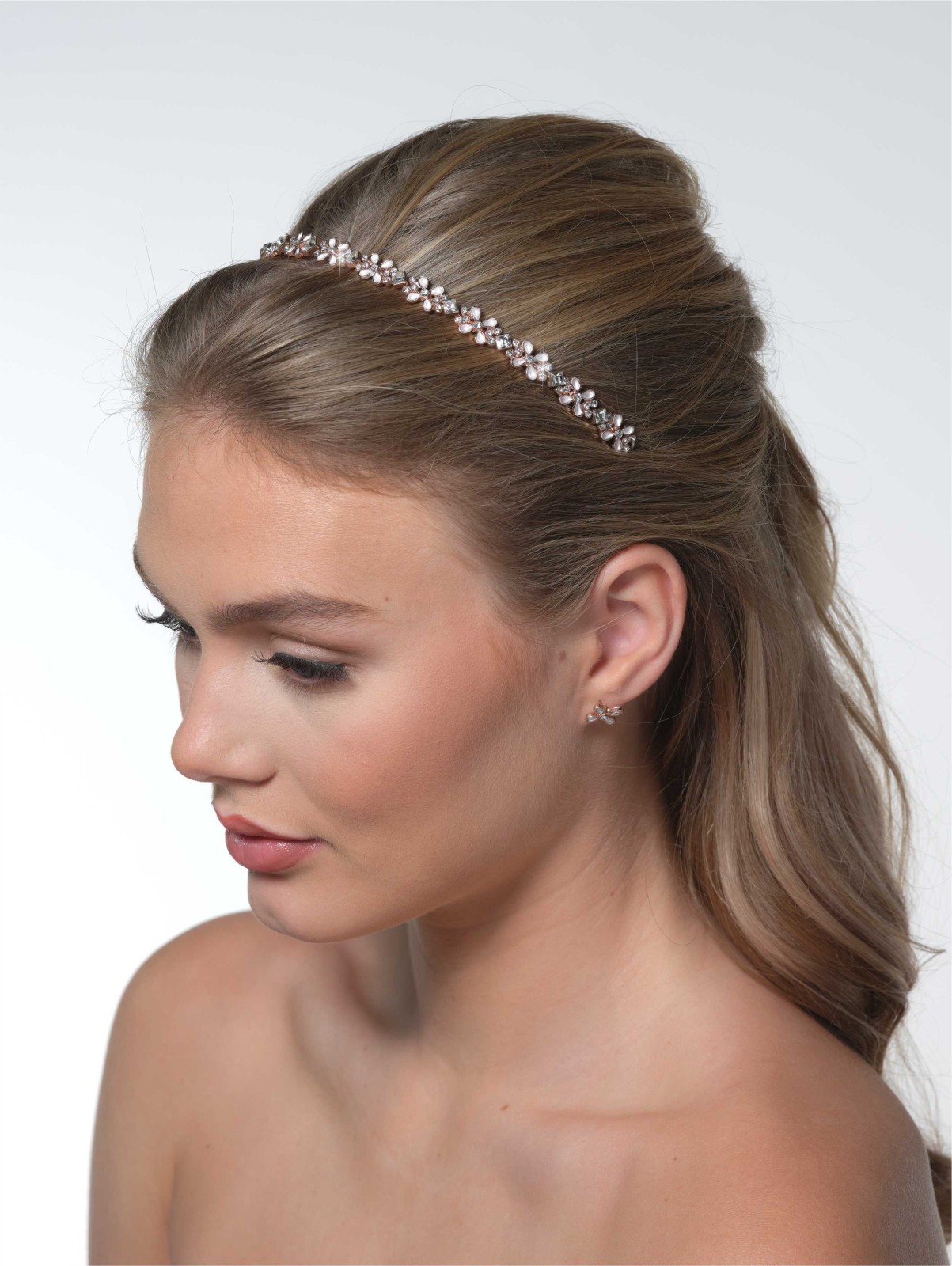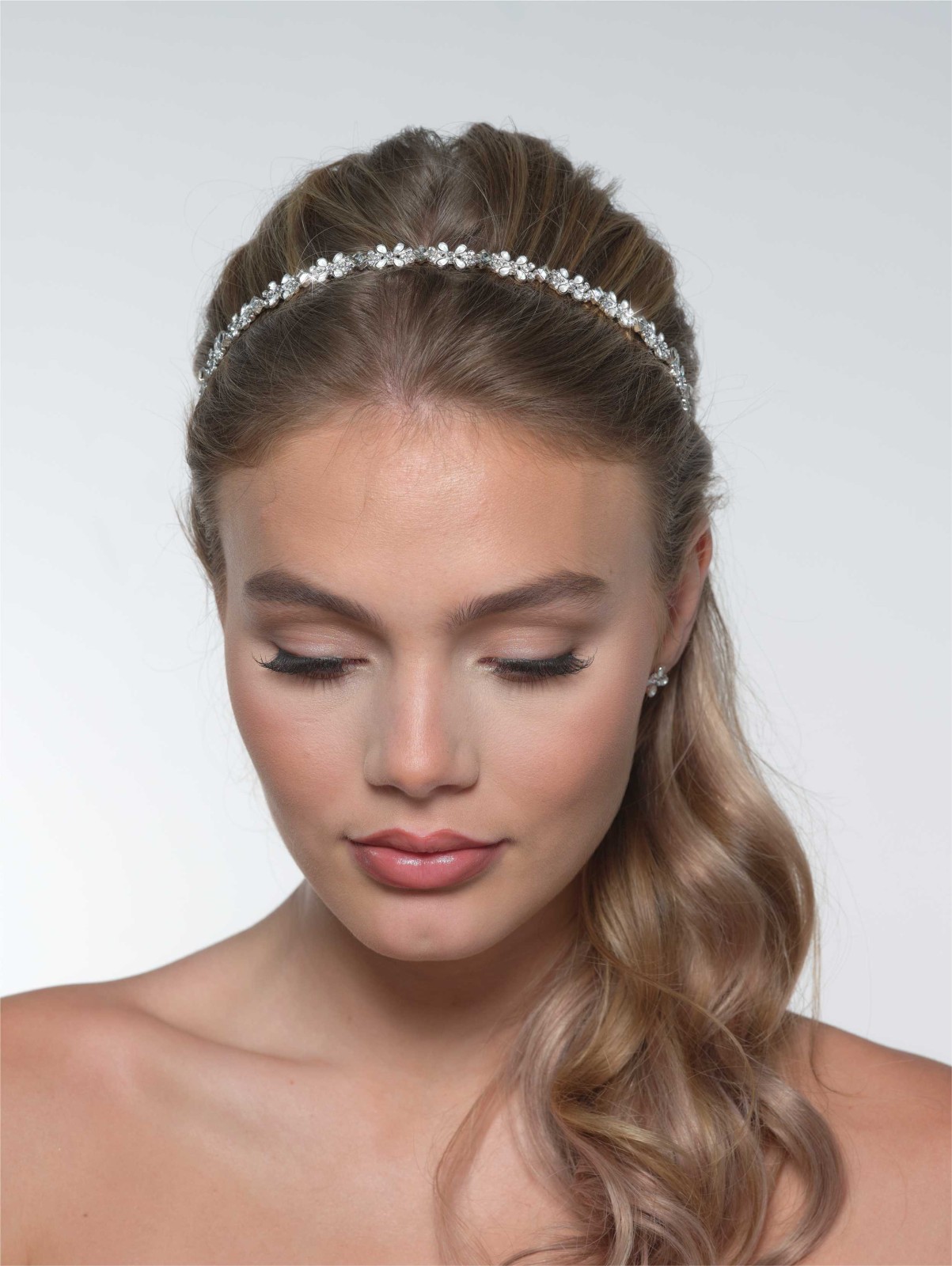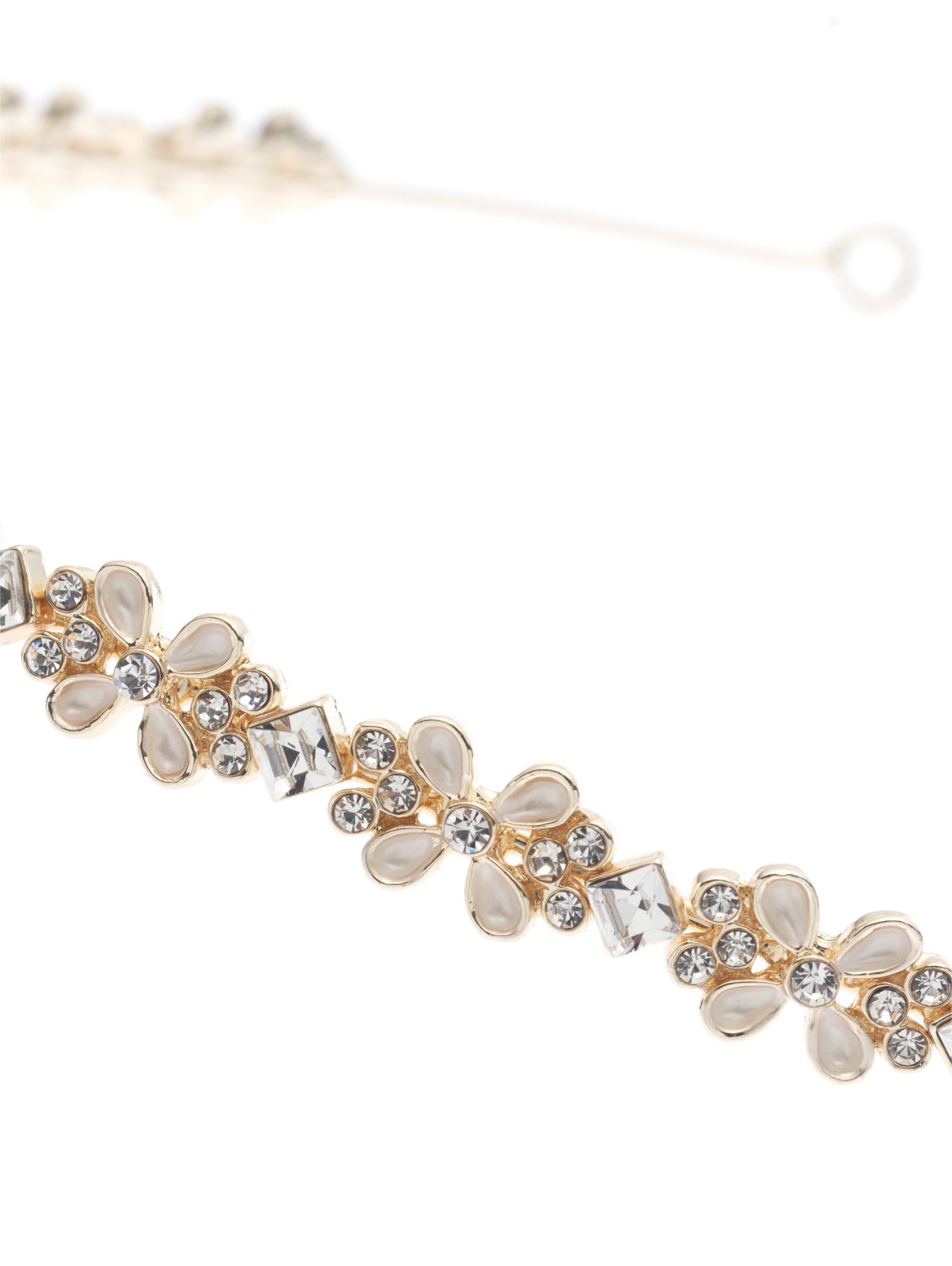 Νυφική στέκα σε μεταλλική βάση με μοτίβο λουλουδιών και ρόμβων σε συνδυασμό από στρας , διαθέσιμη σε τρείς αποχρώσεις