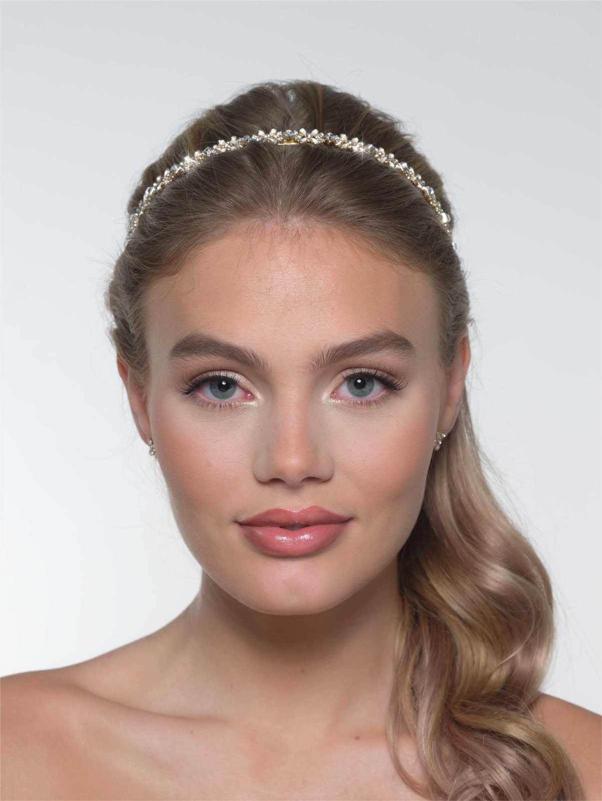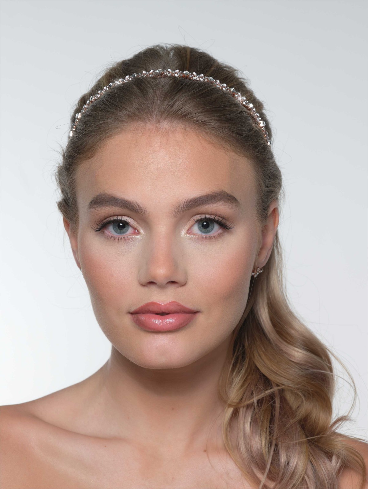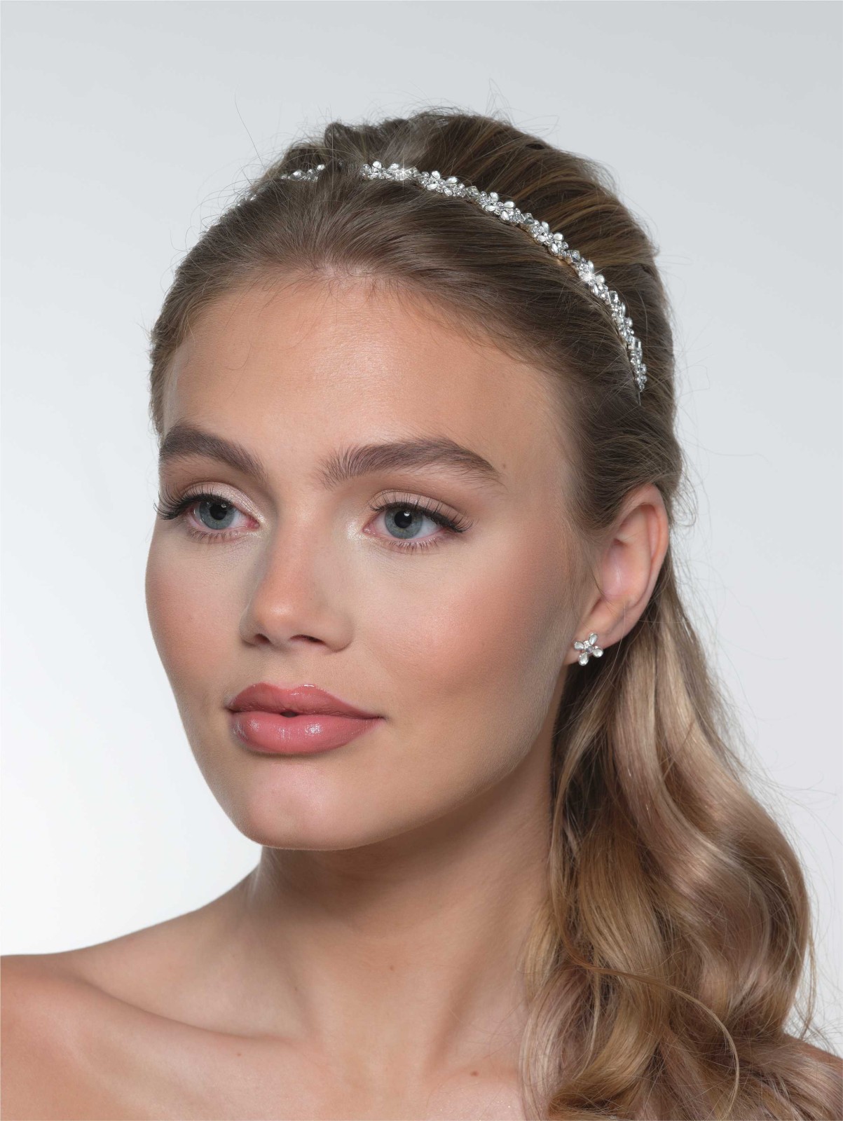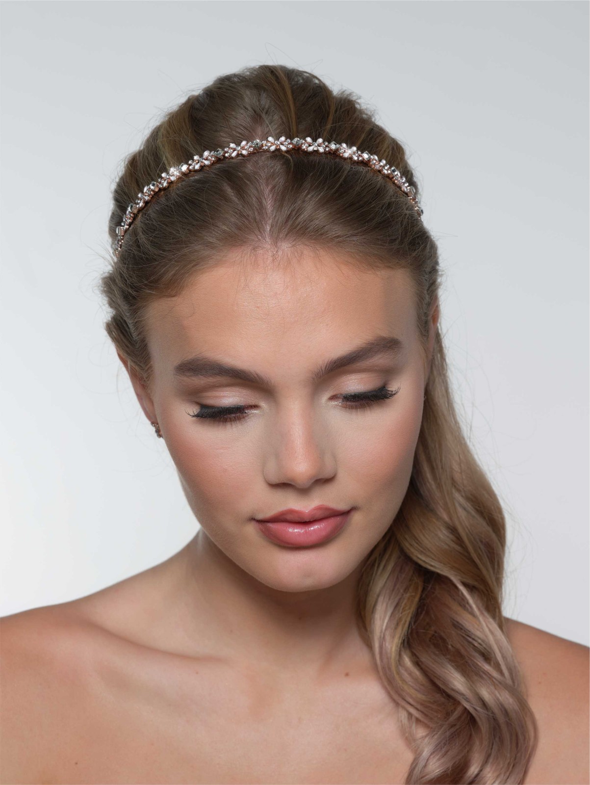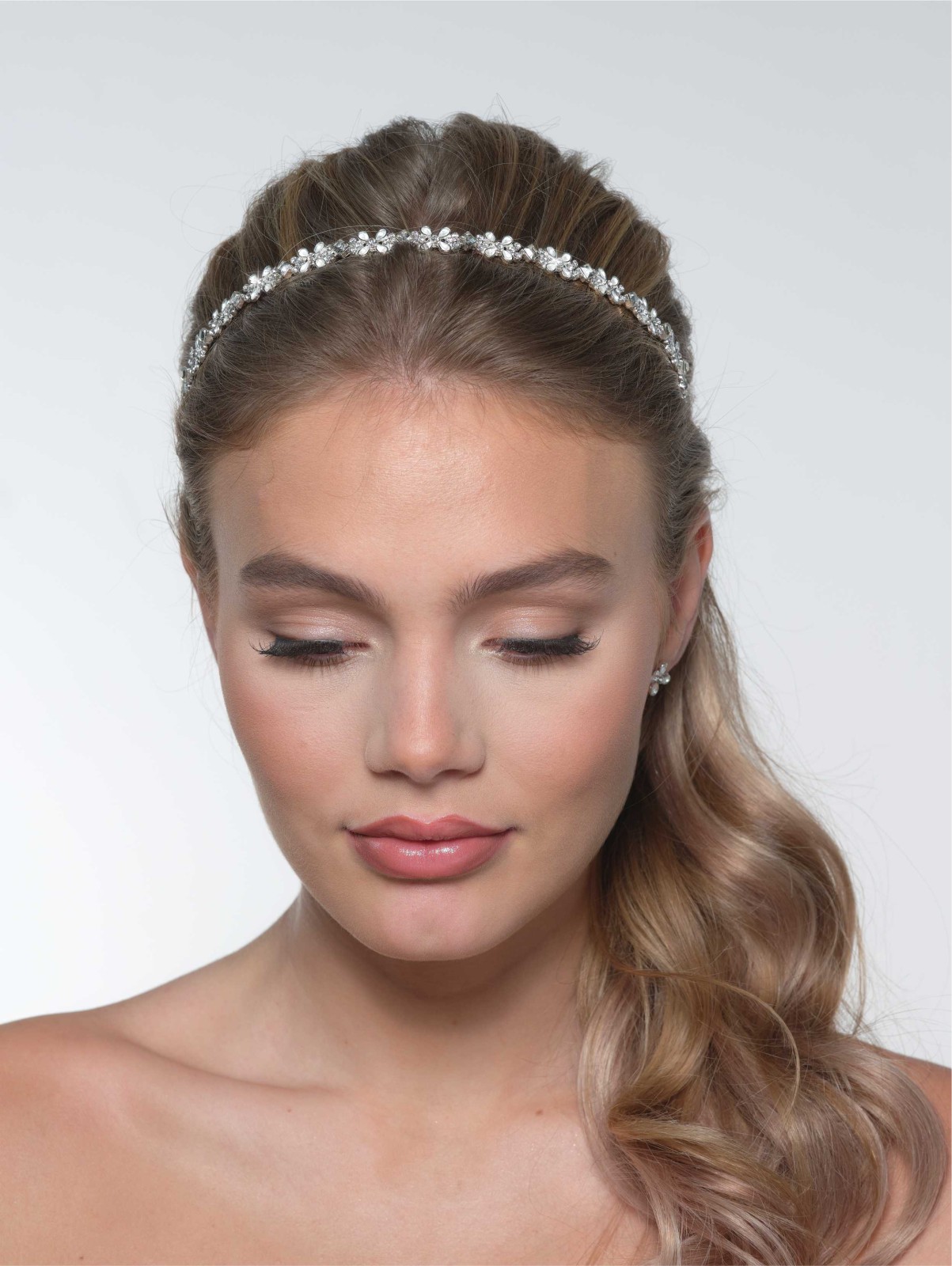 Νυφική στέκα σε μεταλλική βάση με μοτίβο λουλουδιών και ρόμβων σε συνδυασμό από στρας , διαθέσιμη σε τρείς αποχρώσεις