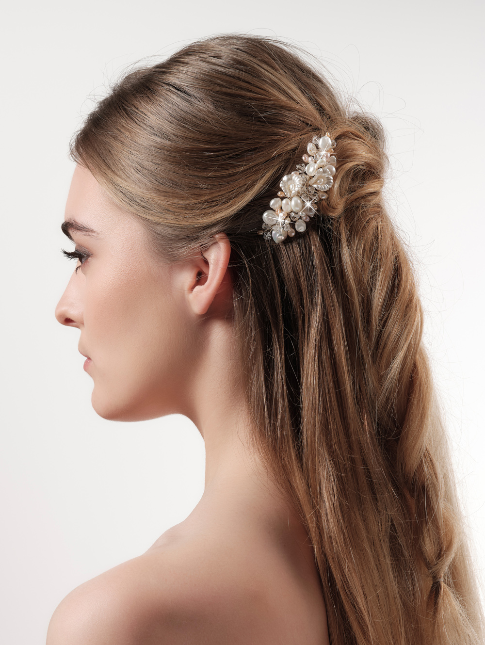 Νυφικό χτενάκι σε κομψό σχέδιο από λουλούδια σε συνδυασμό με πέρλες και κρύσταλλα