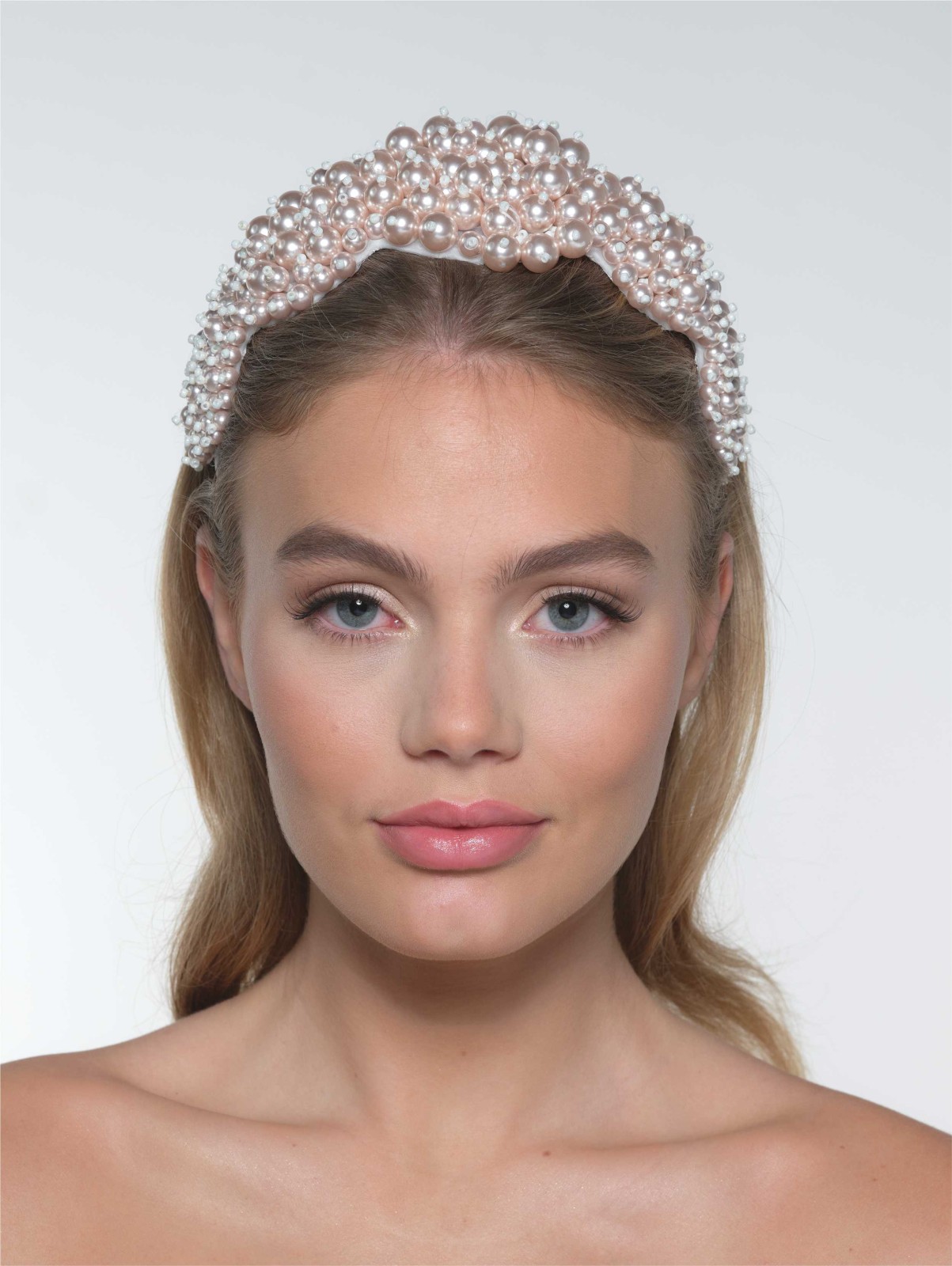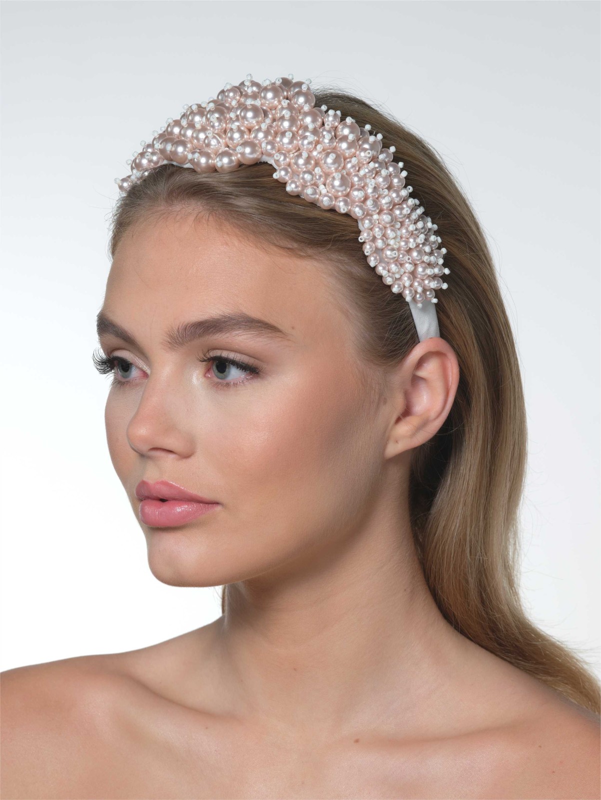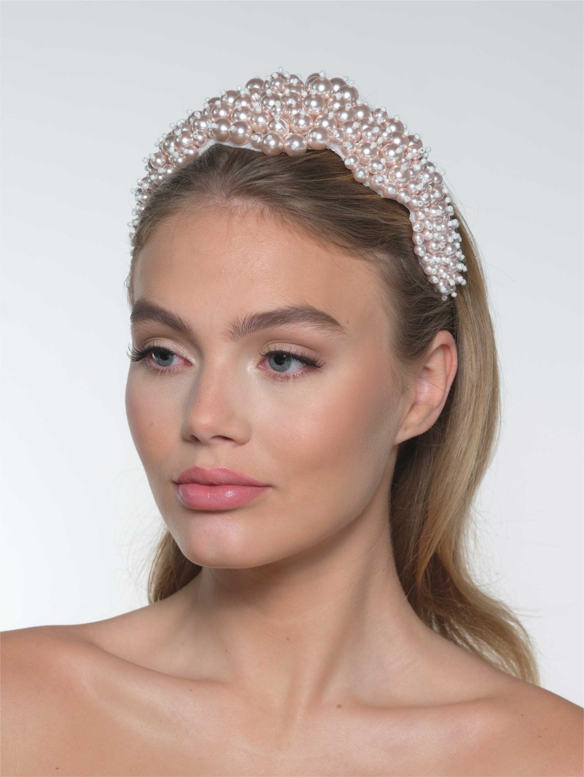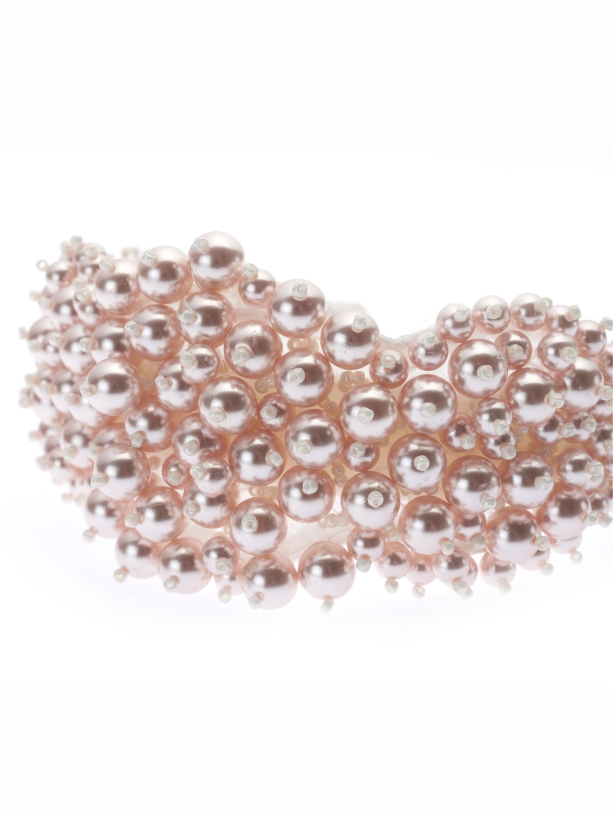 Νυφική στέκα στολισμένη με πέρλες σε κυματιστό μοτίβο , διαθέσιμο σε δύο αποχρώσεις του ιβουάρ και ροζ χρυσό