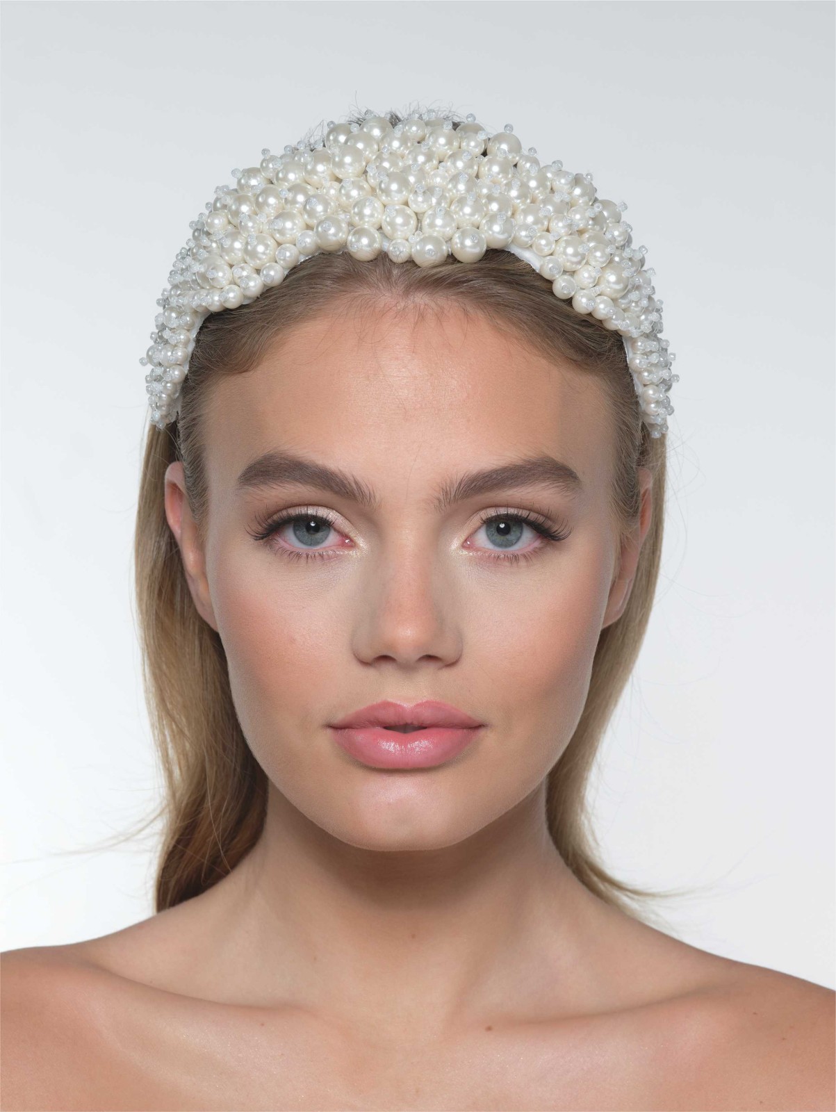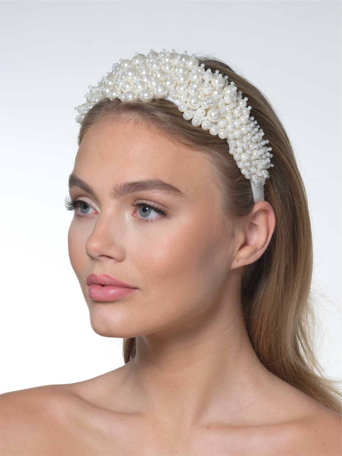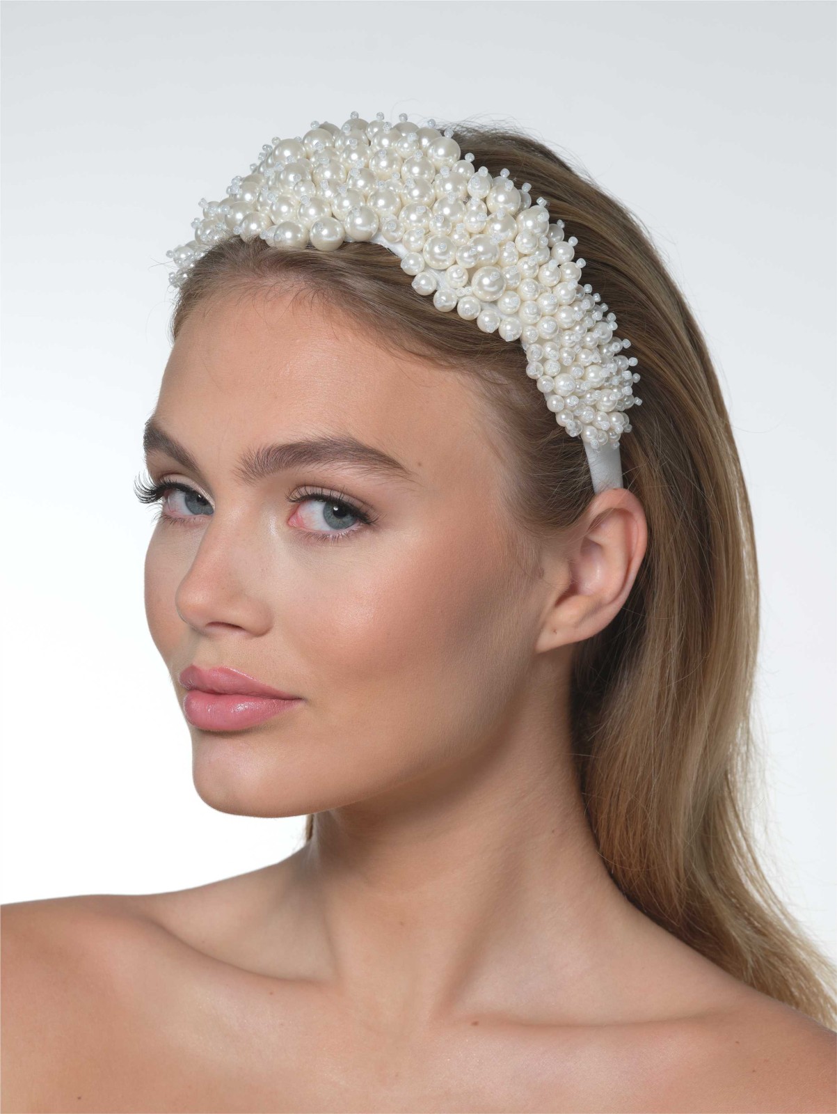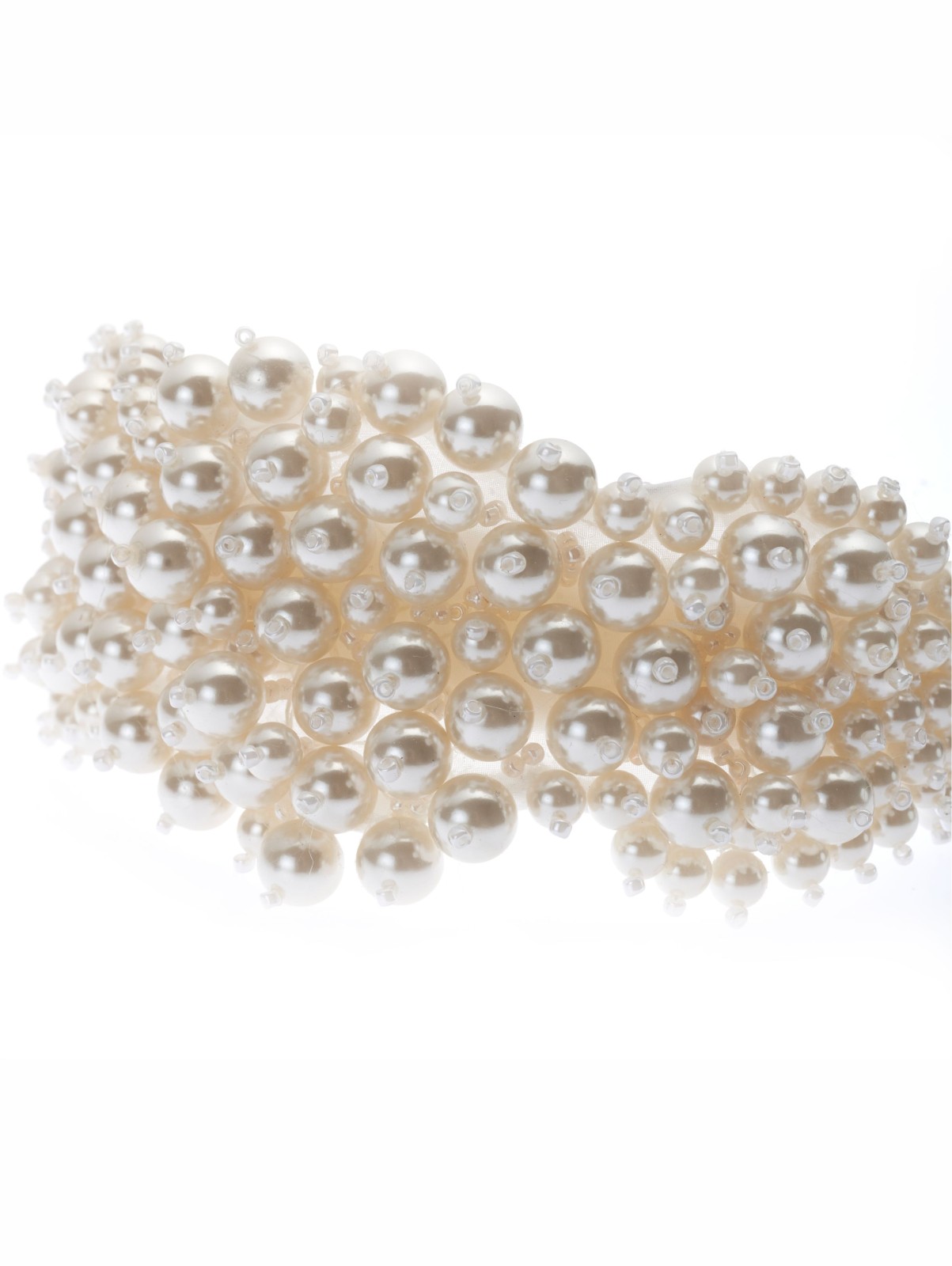 Νυφική στέκα στολισμένη με πέρλες σε κυματιστό μοτίβο , διαθέσιμο σε δύο αποχρώσεις του ιβουάρ και ροζ χρυσό
