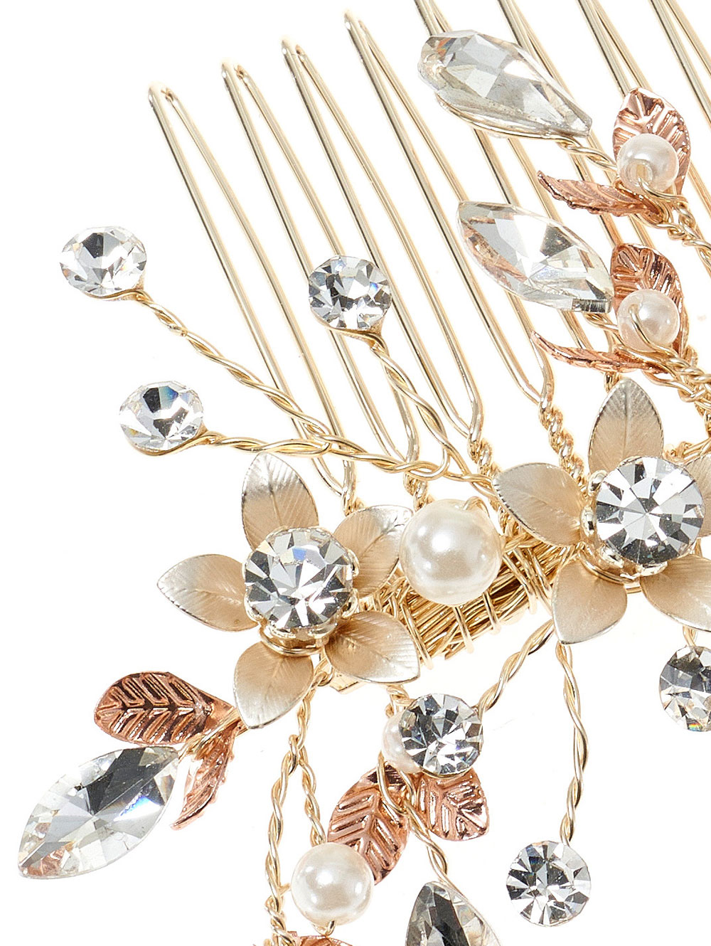 Νυφικό χτενάκι με μεταλλική βάση σε μοτίβο από λουλούδια , κλαδιά και φύλλα καθώς και στρας με πέρλες . Διαθέσιμό σε δύο αποχρώσεις