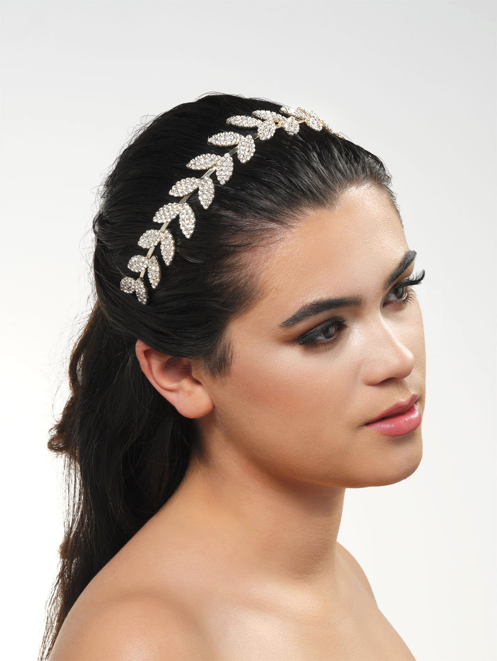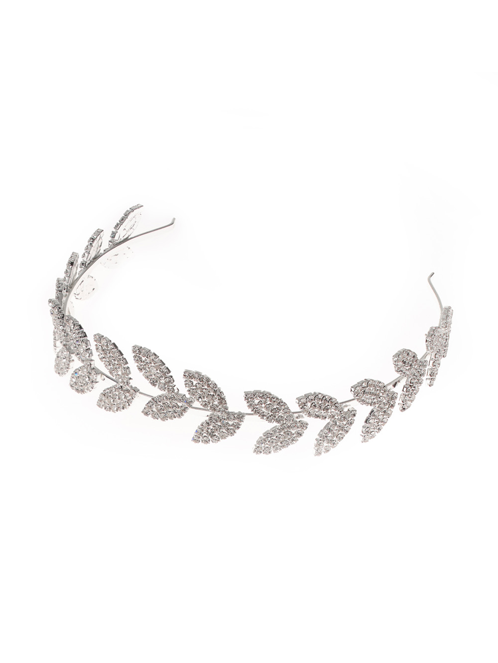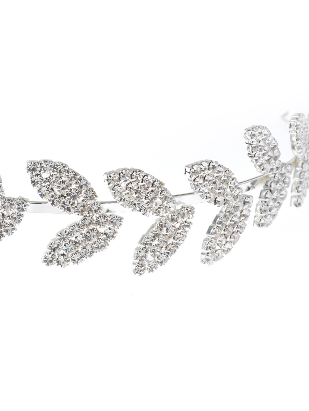 Νυφική στέκα ασημένια με σχέδιο φύλλα δέντρου σε συνδυασμό από κομψά κρυσταλλάκια