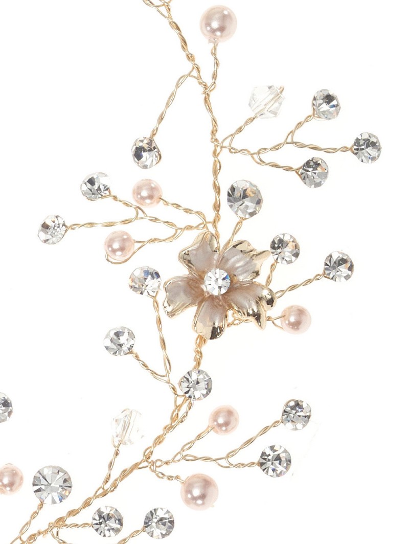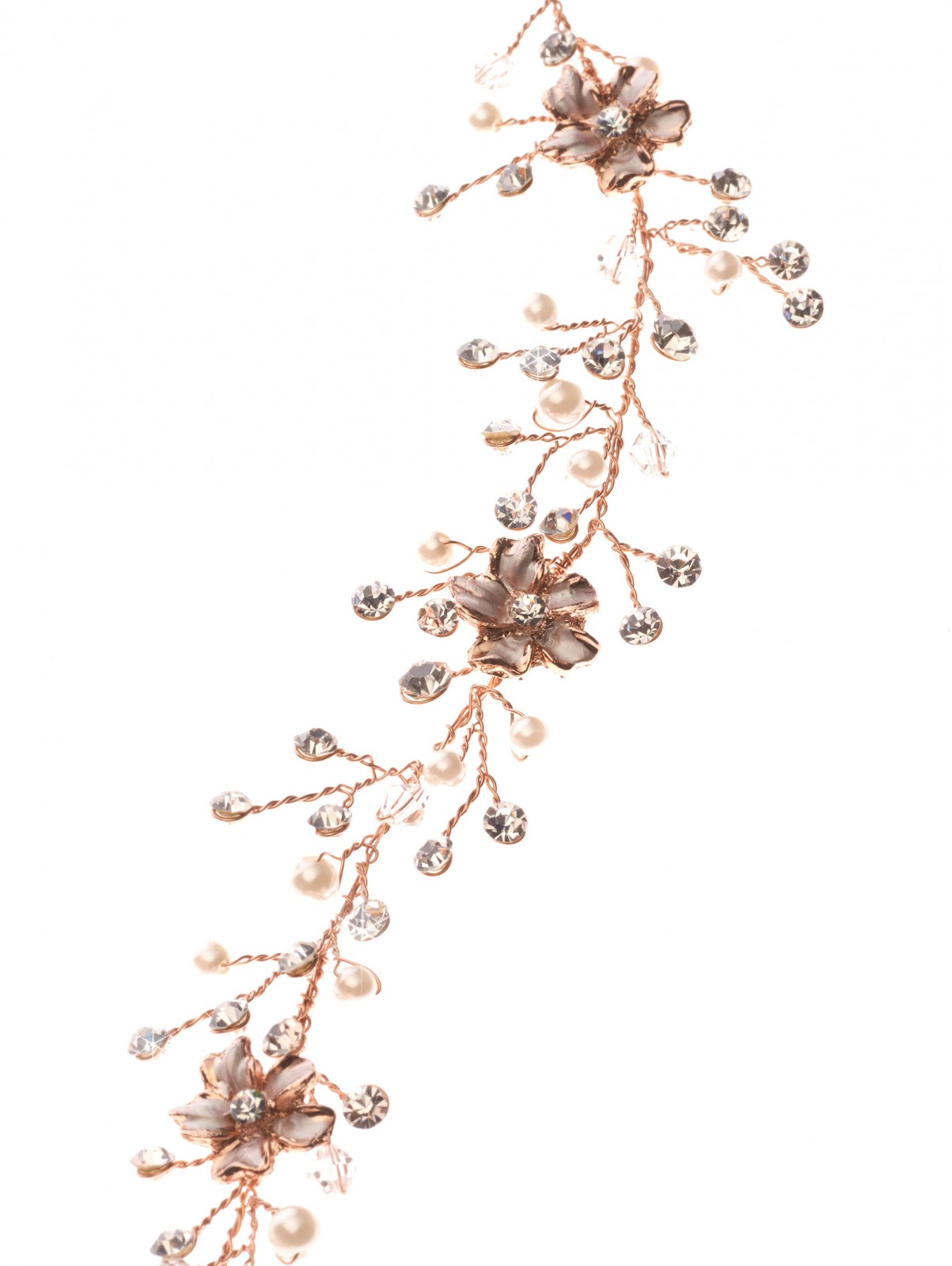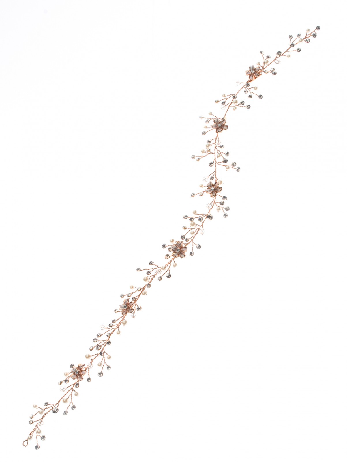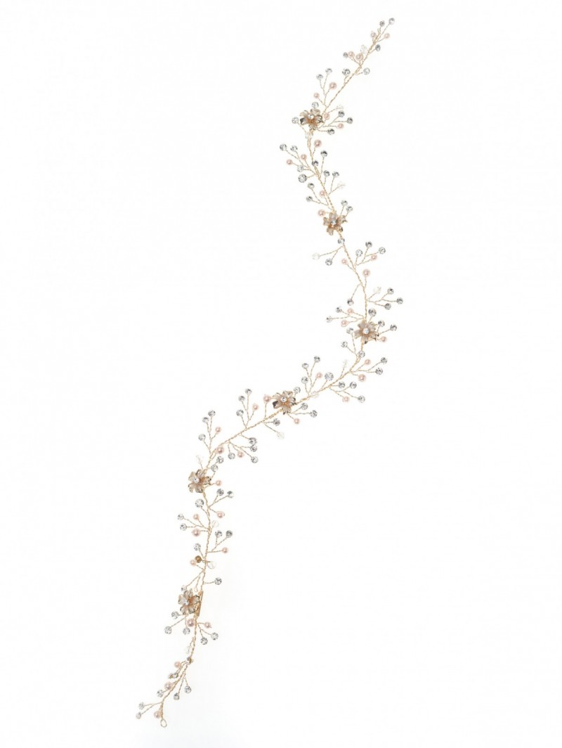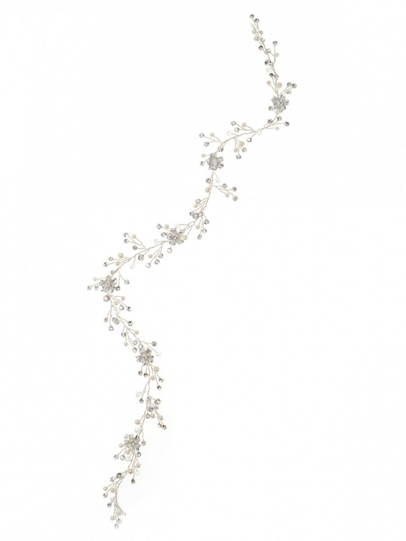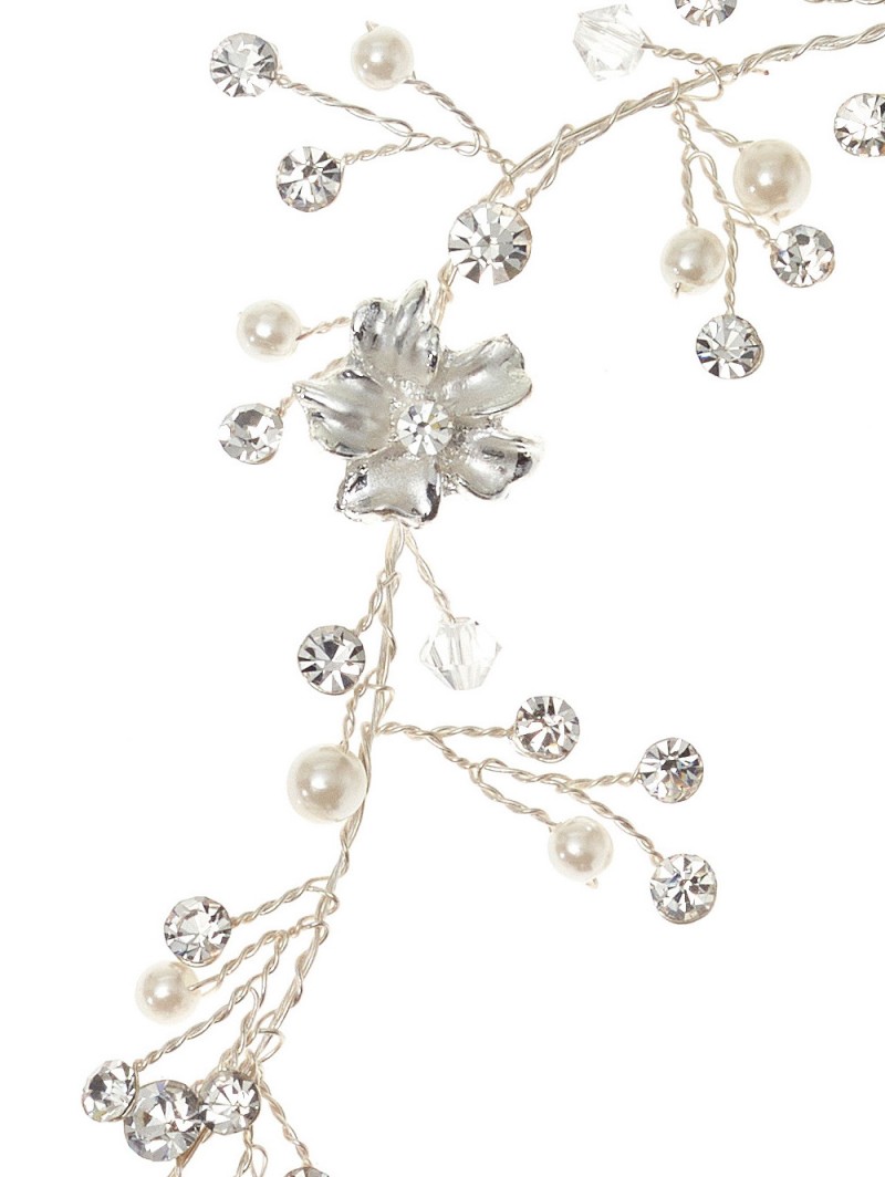 Νυφικό αξεσουάρ μαλλιών 51 cm extra long σε συρμάτινη βάση διακοσμημένο από λουλούδια , πέρλες και στρας , διαθέσιμο σε τρείς αποχρώσεις