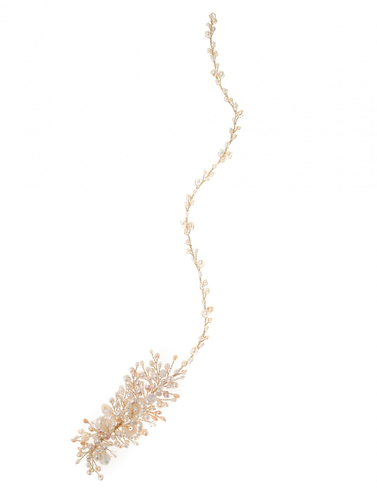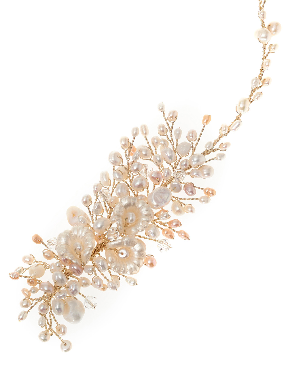 Νυφικό αξεσουάρ μαλλιών σε μοτίβο λουλουδιών μαζί με κρύσταλλα και πέρλες του γλυκού νερού στις άκρες