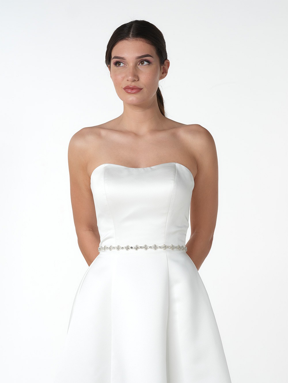Νυφική ζώνη στολισμένη από μοτίβο στρας σε σχήμα σταυρού σε μικρό μέγεθος
