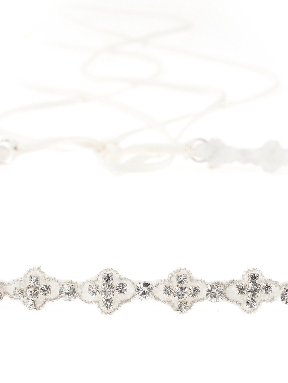 Μάθετε περισσότερα για το προϊόνΝυφική ζώνη στολισμένη από μοτίβο στρας σε σχήμα σταυρού σε μικρό μέγεθος