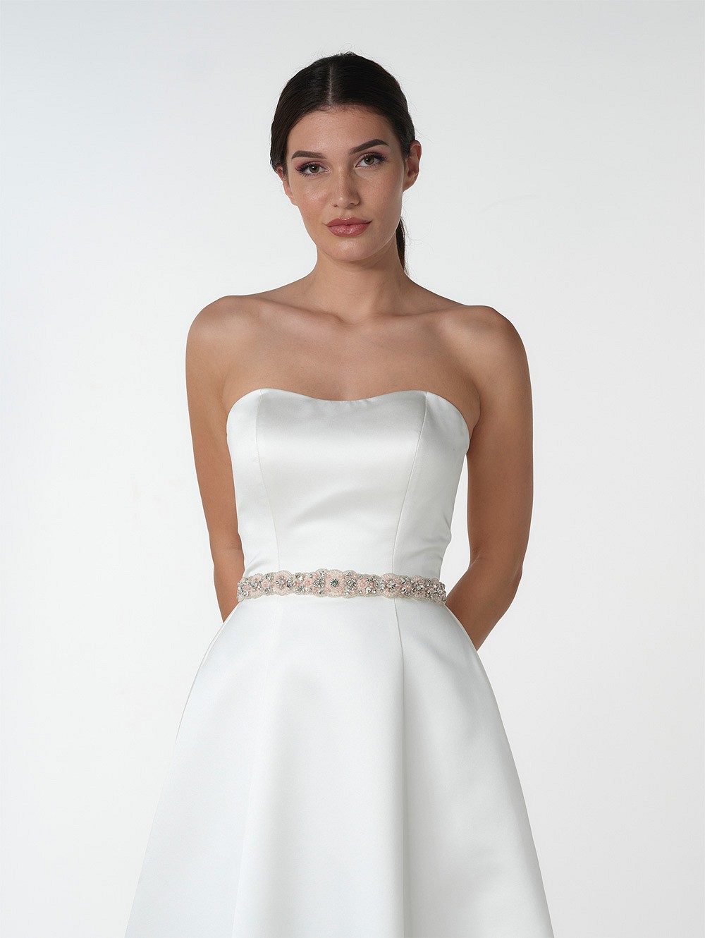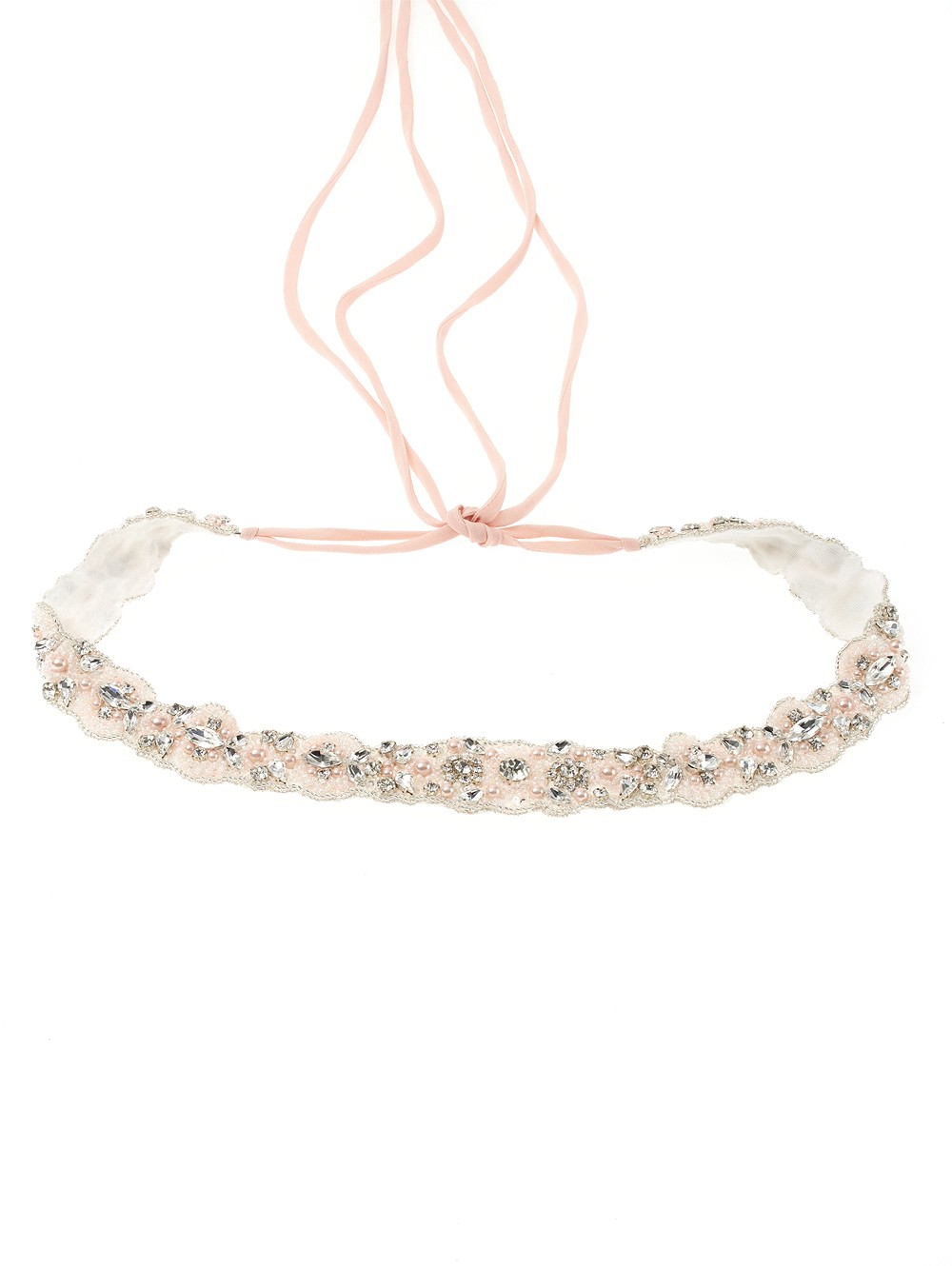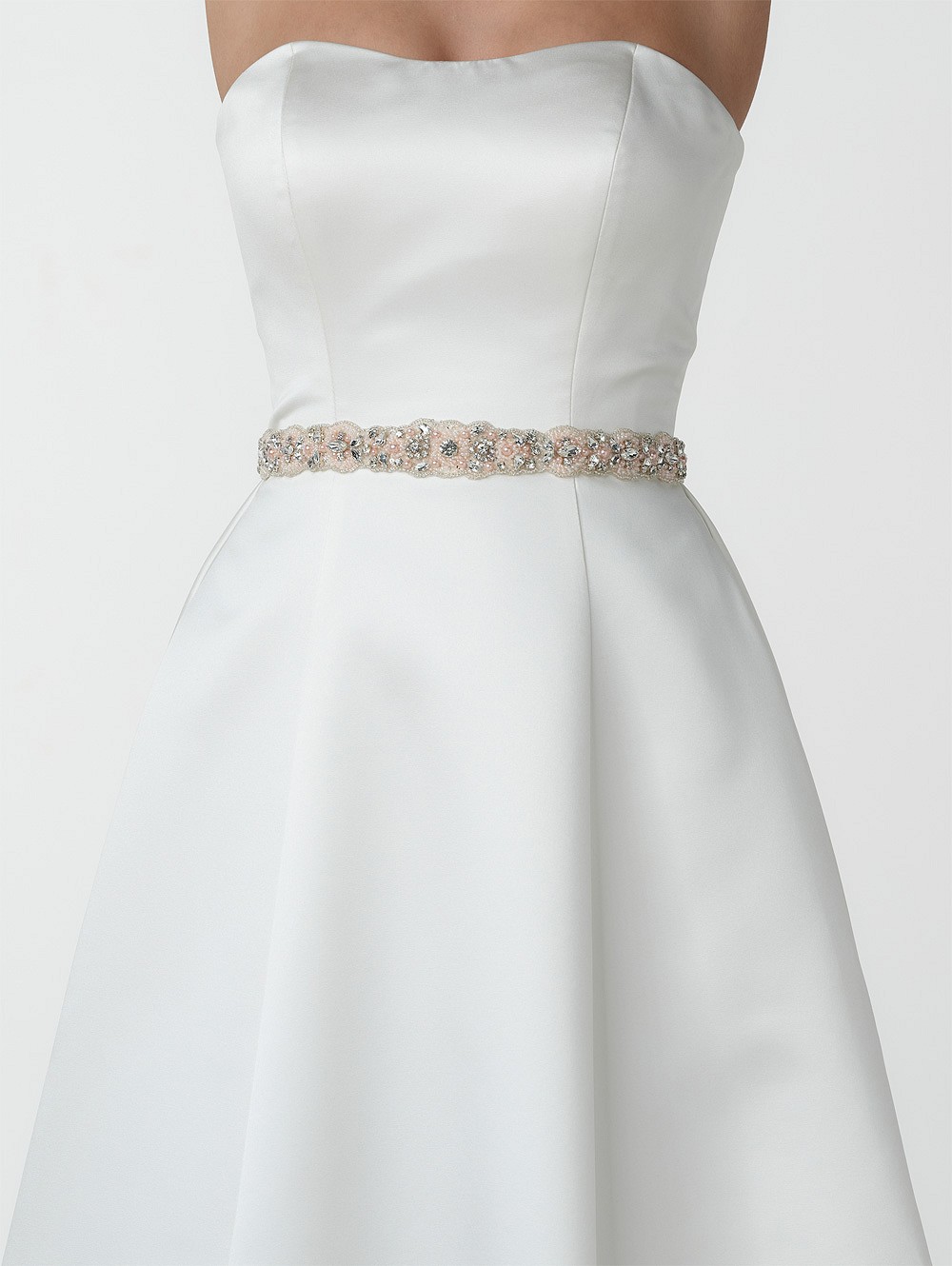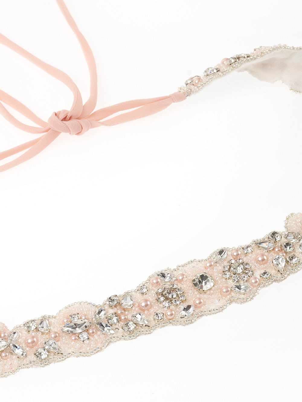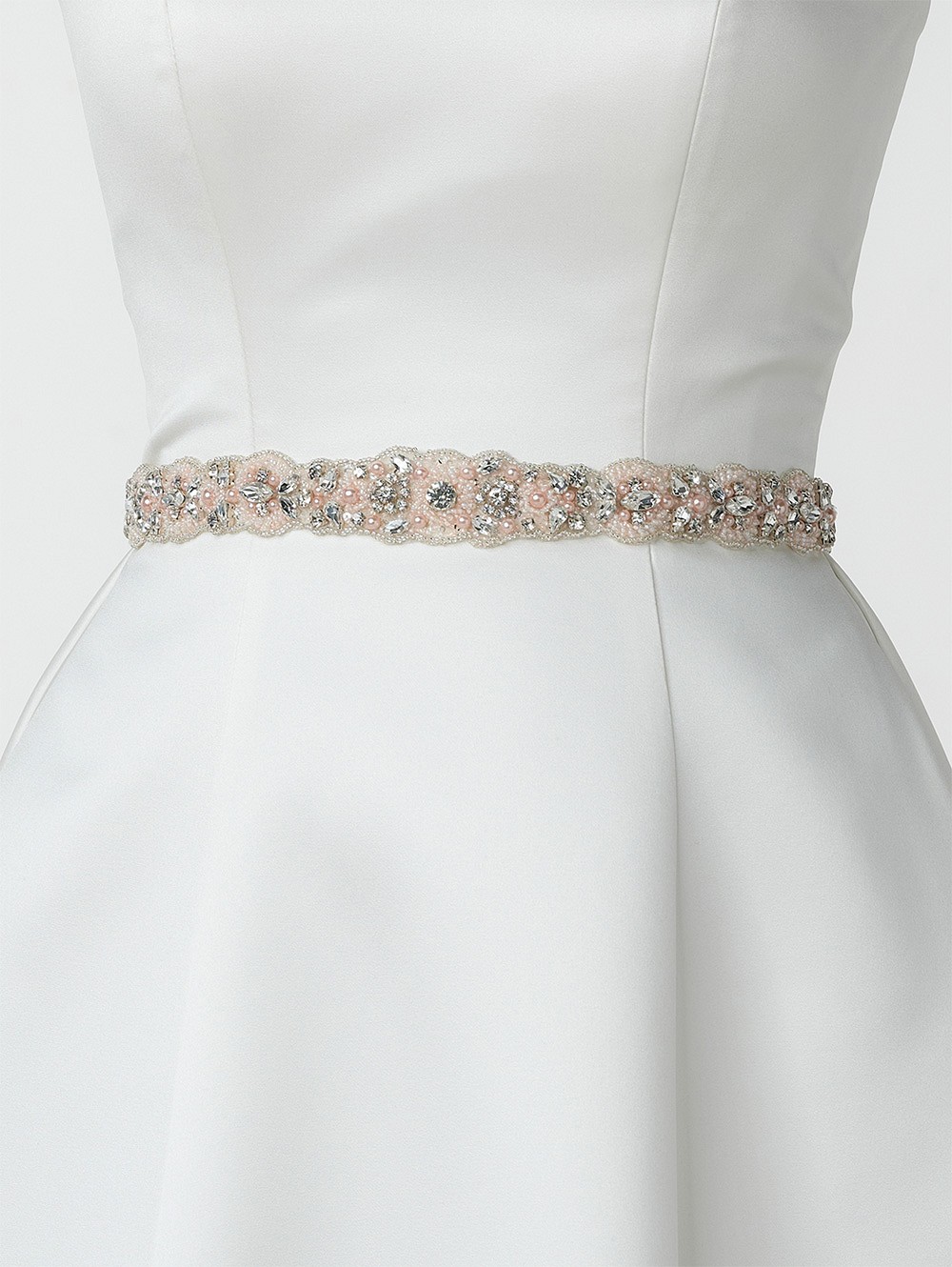 Μάθετε περισσότερα για το προϊόνΝυφική ζώνη με υφασμάτινη βάση σε συνδυασμό από πέρλες , στρας και χάντρες