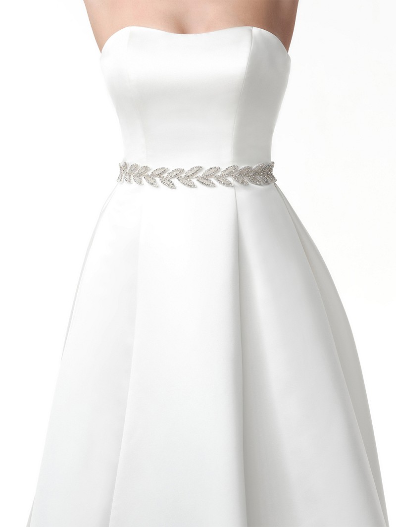Νυφική ζώνη με μεταλλική βάση σε μοτίβο φύλλων και στολισμένη με στρας