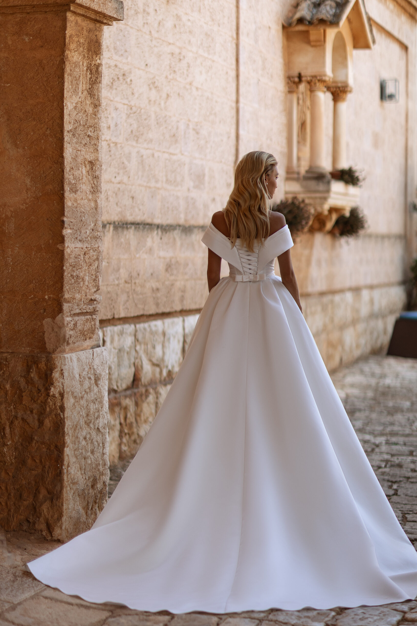 Νυφικό φόρεμα σατέν πριγκιπικό.