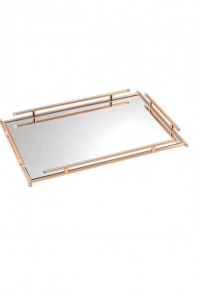 Δίσκος INOX ροζ χρυσό με κρύσταλλα στα πόμολα και καθρέφτη στη βάση