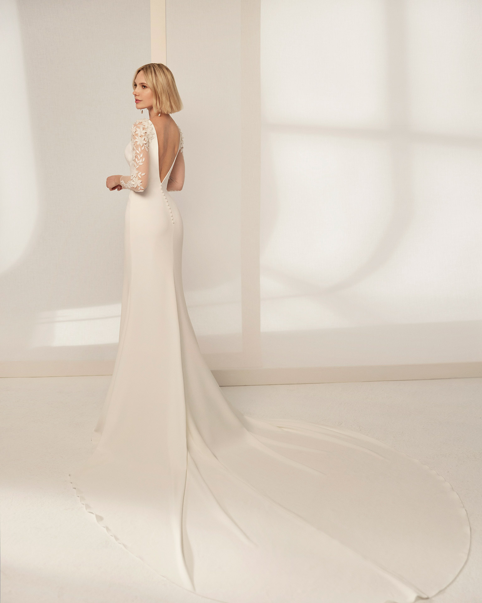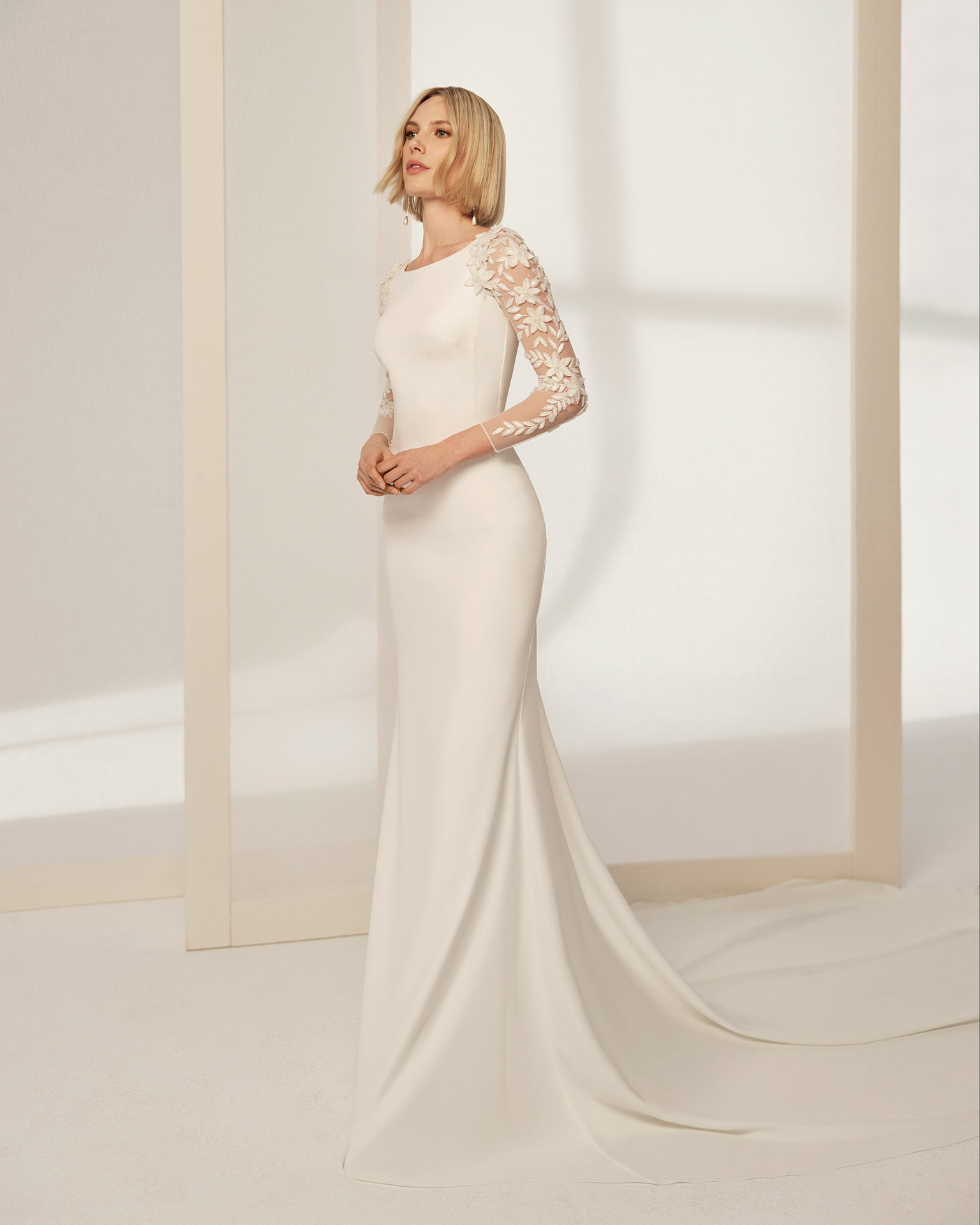 Νυφικό φόρεμα σε στενή γραμμή από ύφασμα κρεπ/crepe υψηλής ποιότητας σε κομψό στυλ