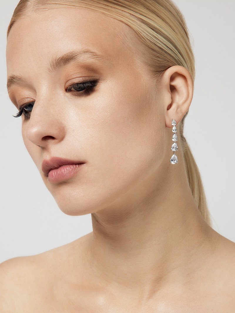 Μάθετε περισσότερα για το προϊόνΣκουλαρίκια επιχρυσωμένα με λευκό χρυσό 18 καρατίων σε βάση από ασήμι 925 με φωτεινά στρας