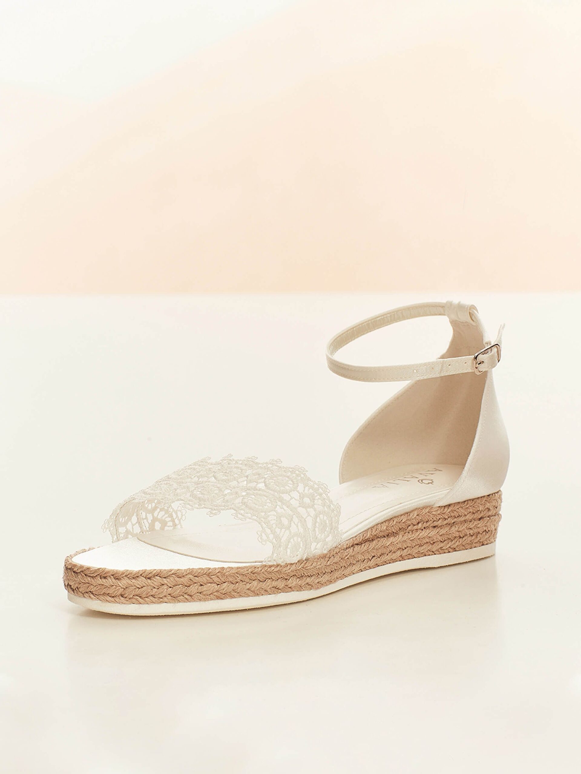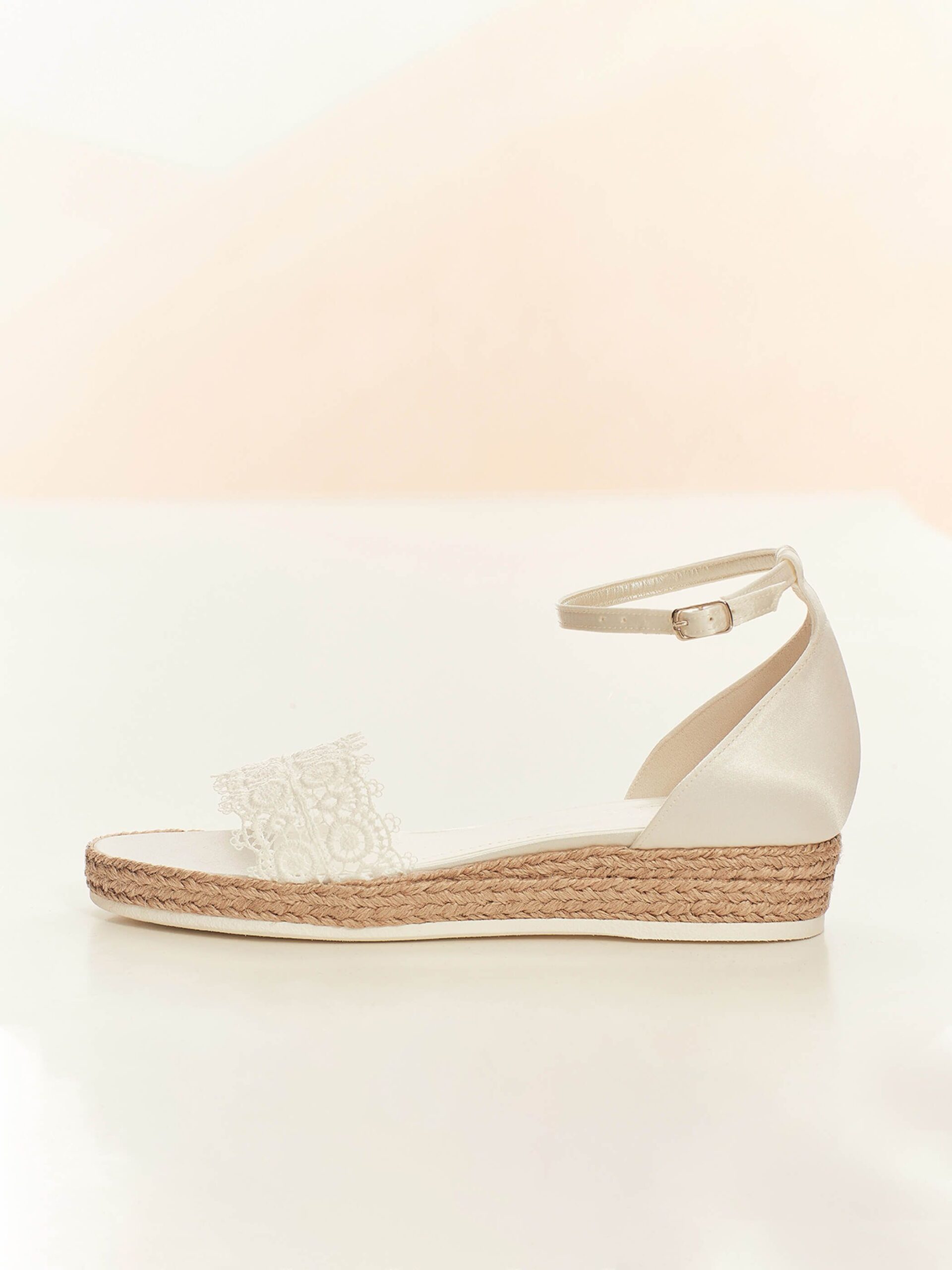 Νυφικά σανδάλια σε σατέν βάση και ιβουάρ χρώμα