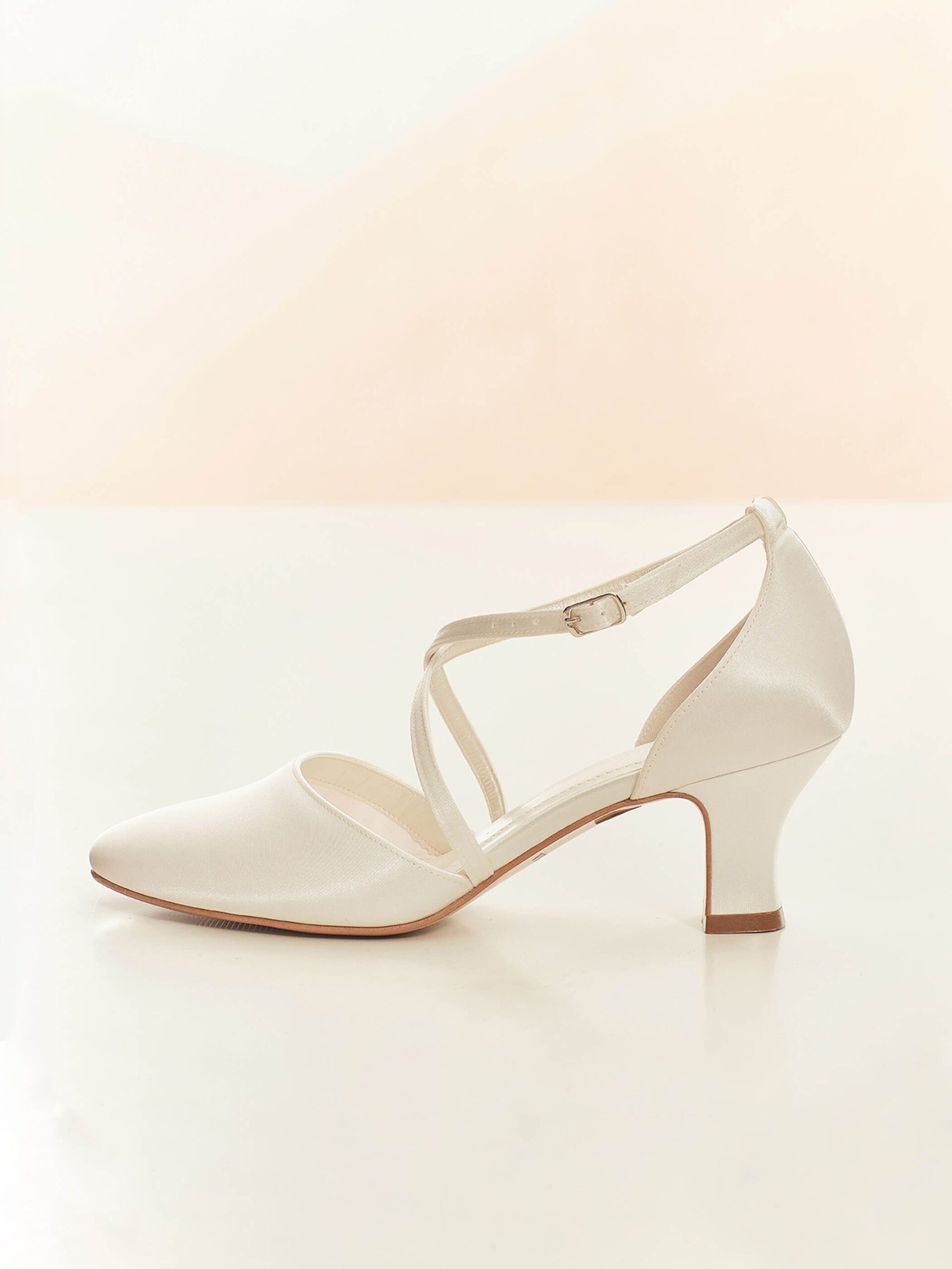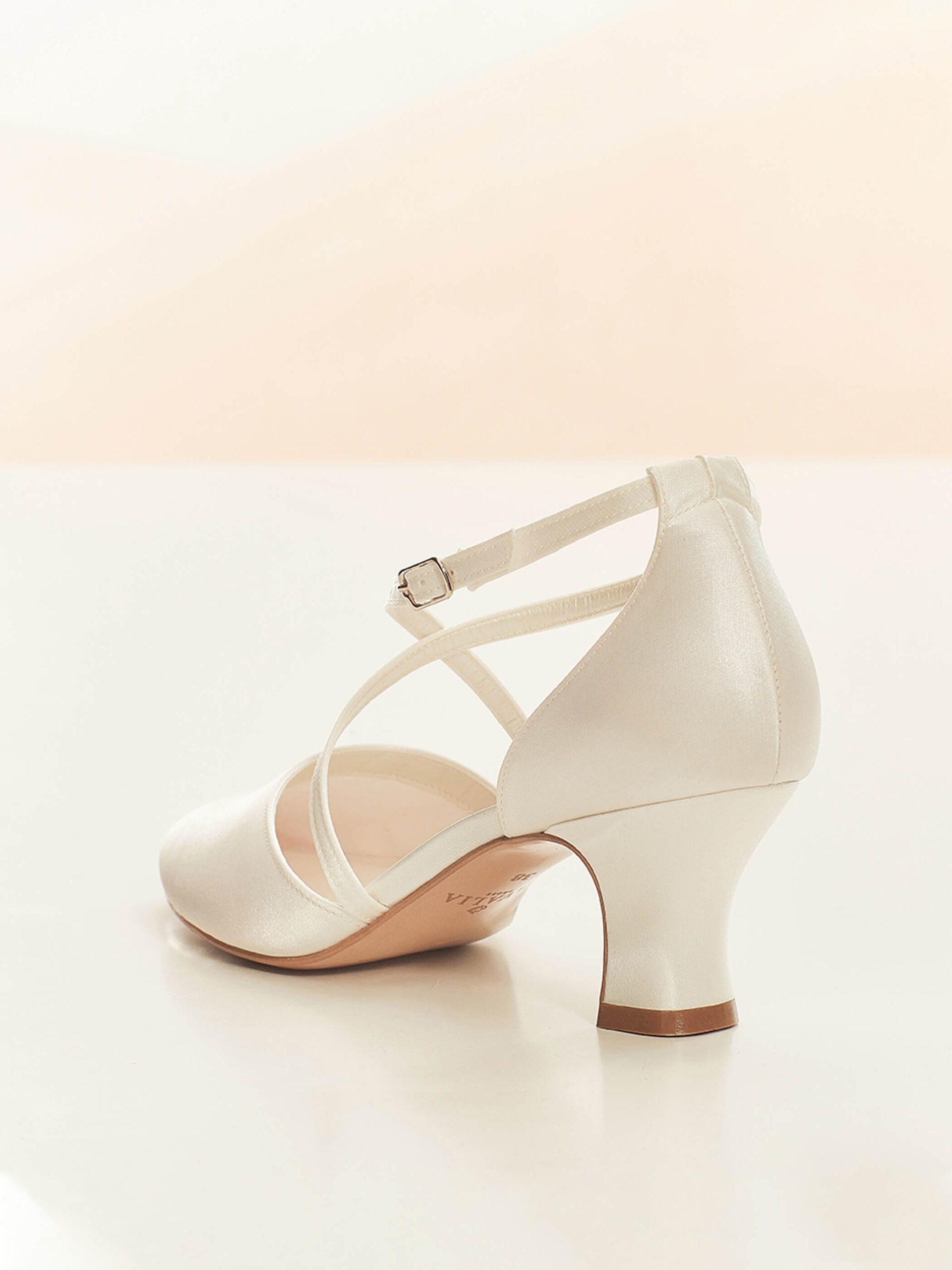 Νυφική γόβα σατέν σε ιβουάρ χρώμα με ευπροσάρμοστα λουράκια