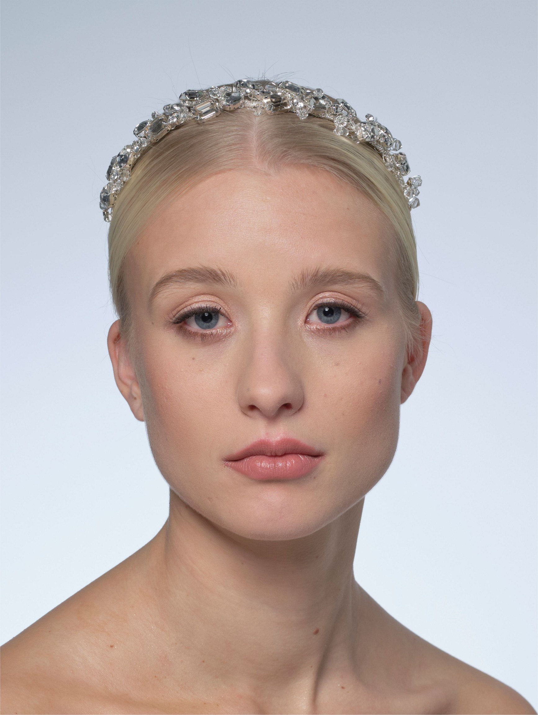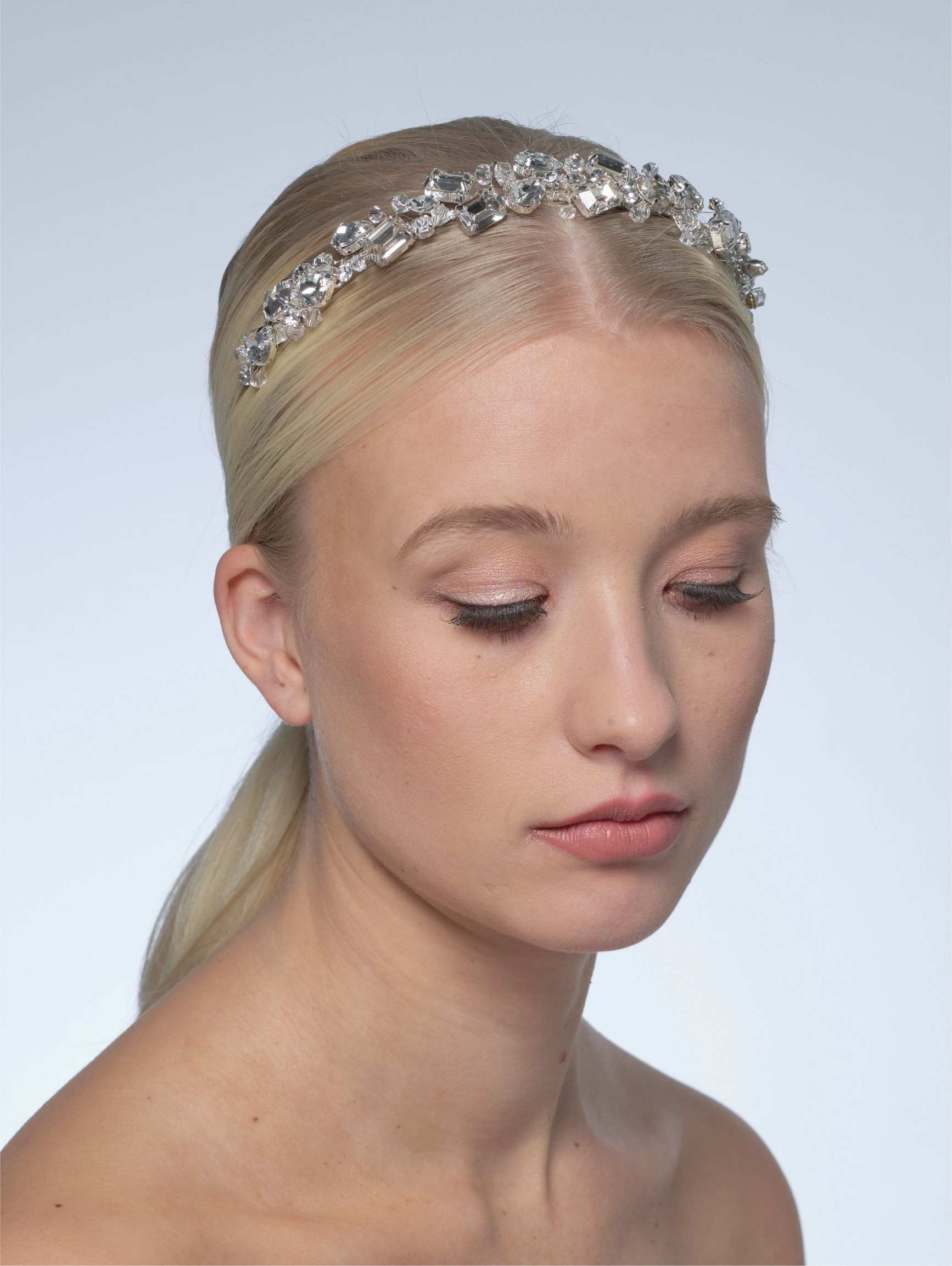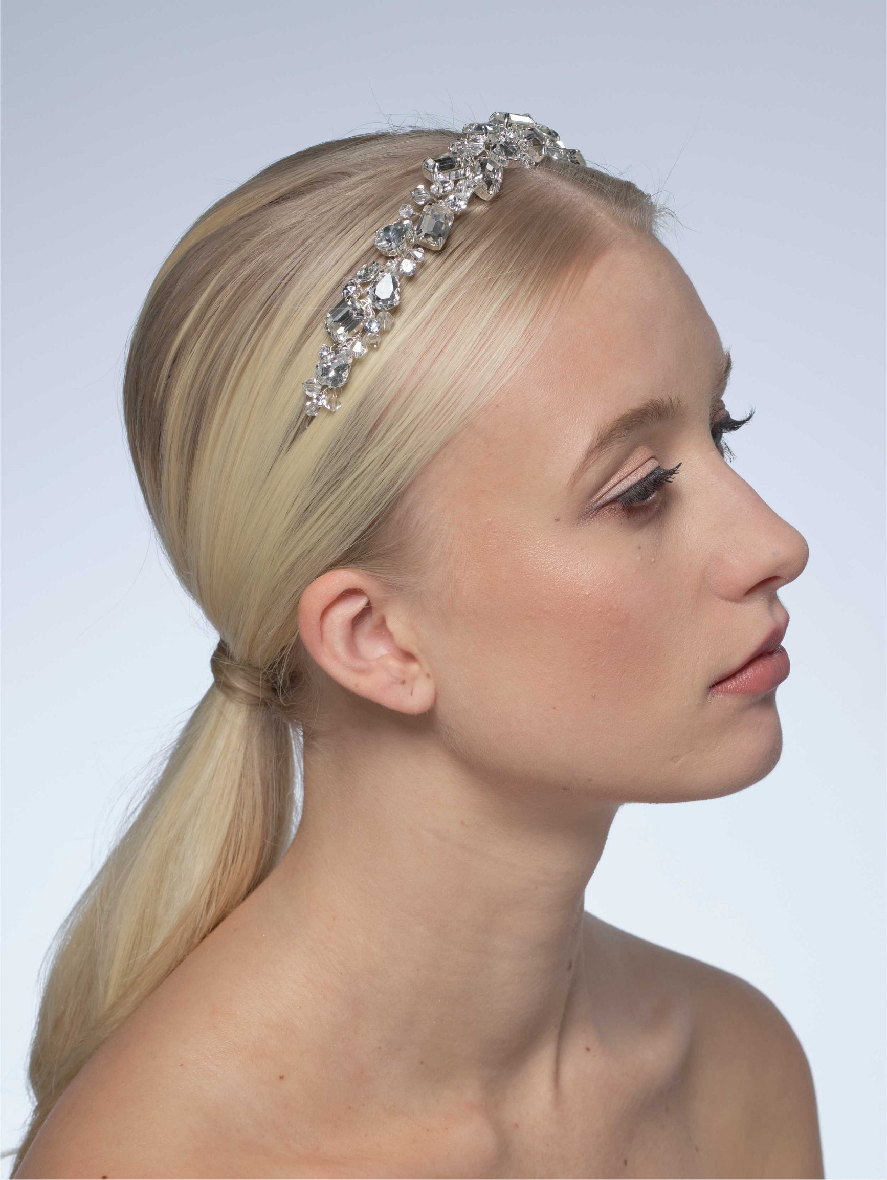 Νυφική μεταλλική στέκα σε ασημί βάση με κρύσταλλα σε διάφορα σχήματα.