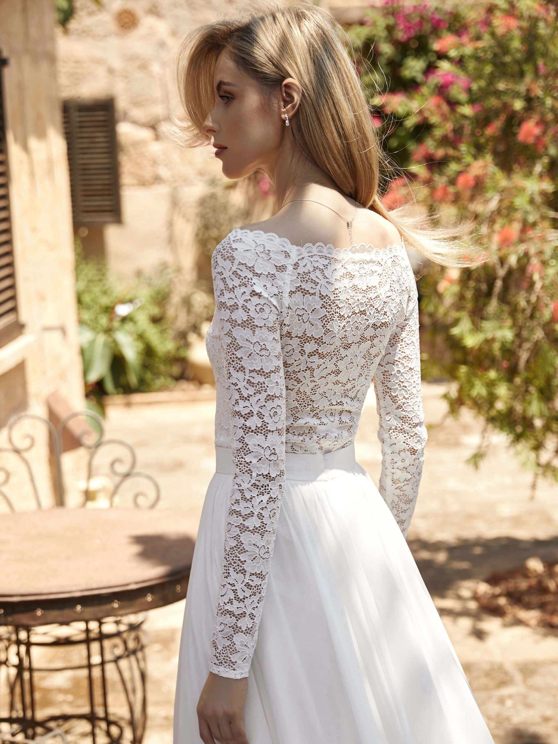 Νυφικό κορμάκι φτιαγμένο από δαντέλα και σε κομψό μοτίβο