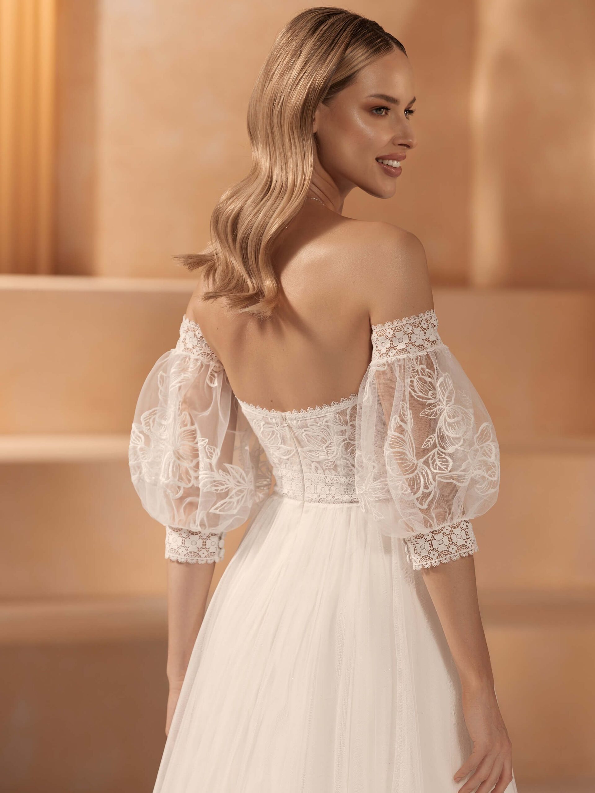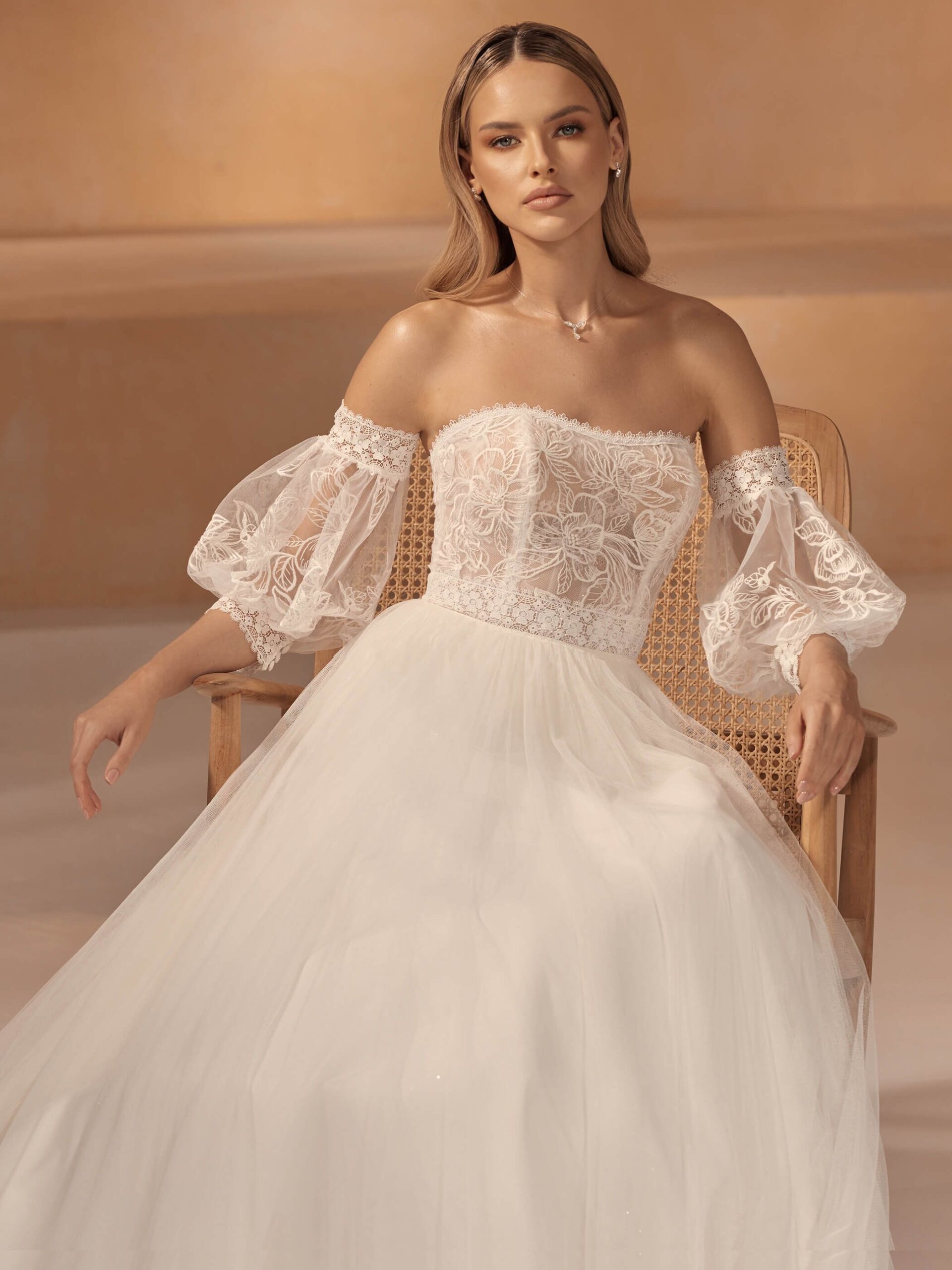 Νυφικό φόρεμα τουαλέτα με δαντέλα και τούλι υψηλής ποιότητας