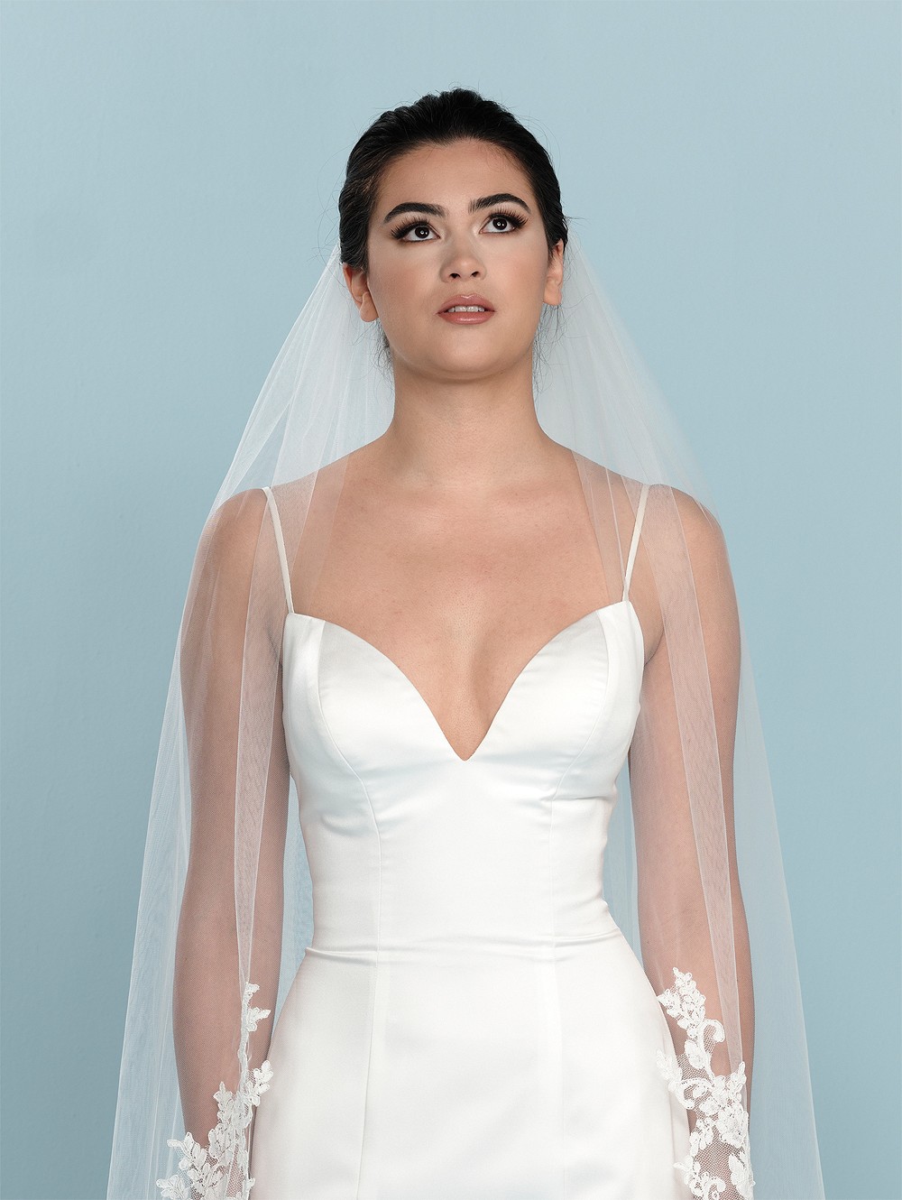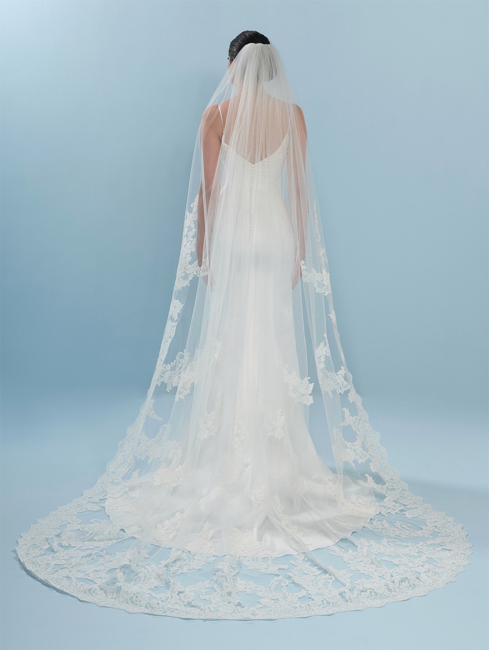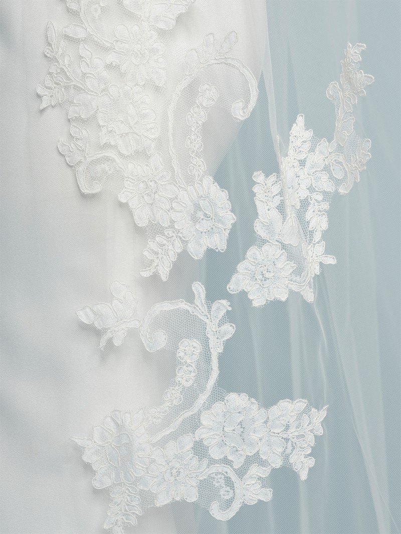 Μονό πέπλο σε τούλι με κεντημένη δαντέλα Γαλλίας υψηλής ποιότητας