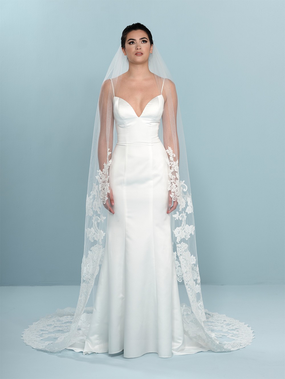 Μάθετε περισσότερα για το προϊόνΜονό πέπλο σε τούλι με κεντημένη δαντέλα Γαλλίας υψηλής ποιότητας