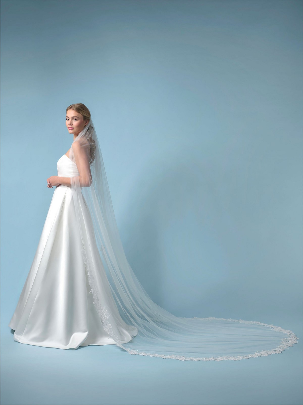 Μονό πέπλο σε μαλακό/soft τούλι σε συνδυασμό από κεντημένα λουλούδια , φύλλα και πούλιες