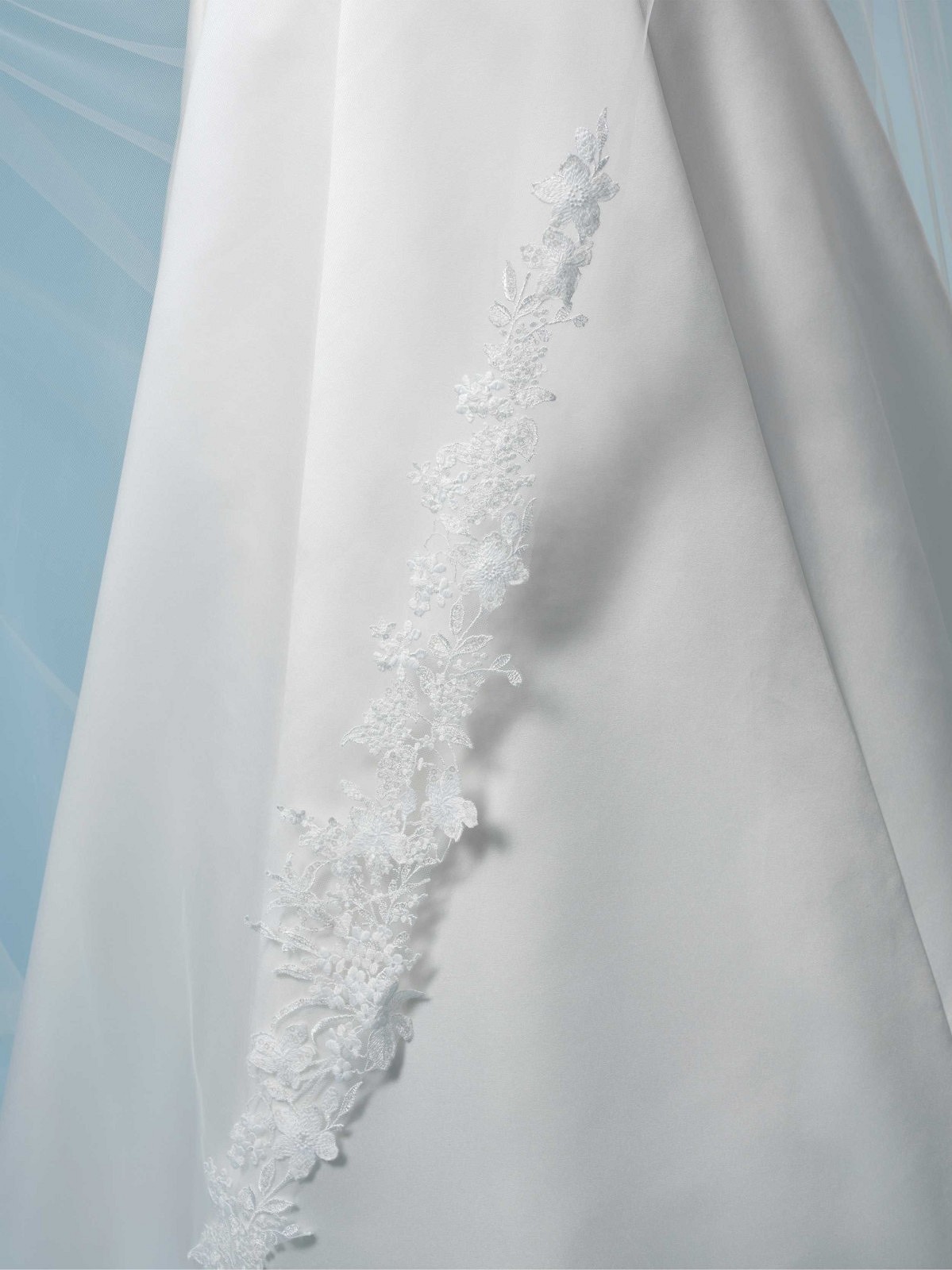 Μάθετε περισσότερα για το προϊόνΜονό πέπλο σε μαλακό/soft τούλι σε συνδυασμό από κεντημένα λουλούδια , φύλλα και πούλιες