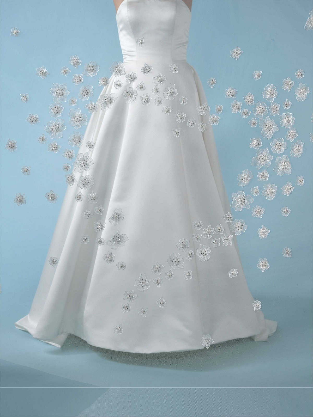Μάθετε περισσότερα για το προϊόνΜονό πέπλο σε τούλι με κεντήματα 3D σε μοτίβο λουλουδιών σε συνδυασμό με πετράδια