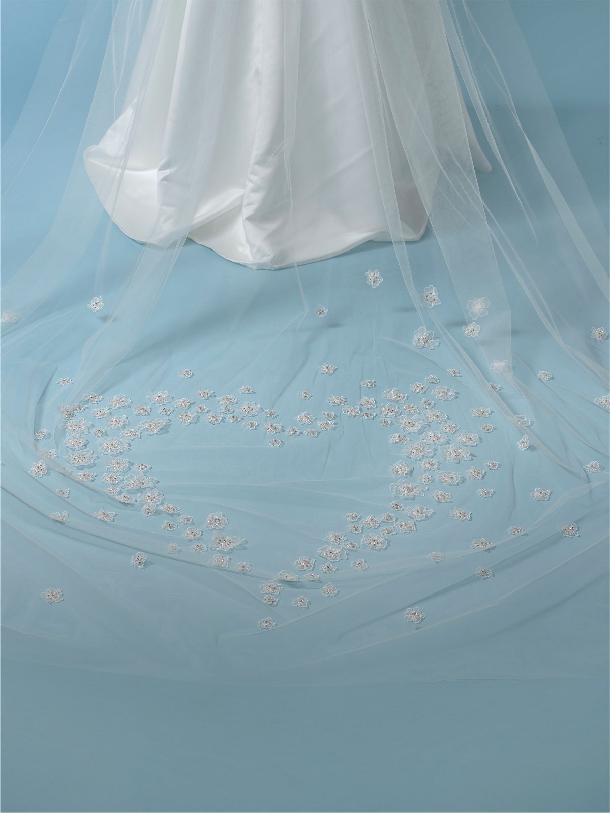 Μονό πέπλο σε τούλι με κεντήματα 3D σε μοτίβο λουλουδιών σε συνδυασμό με πετράδια