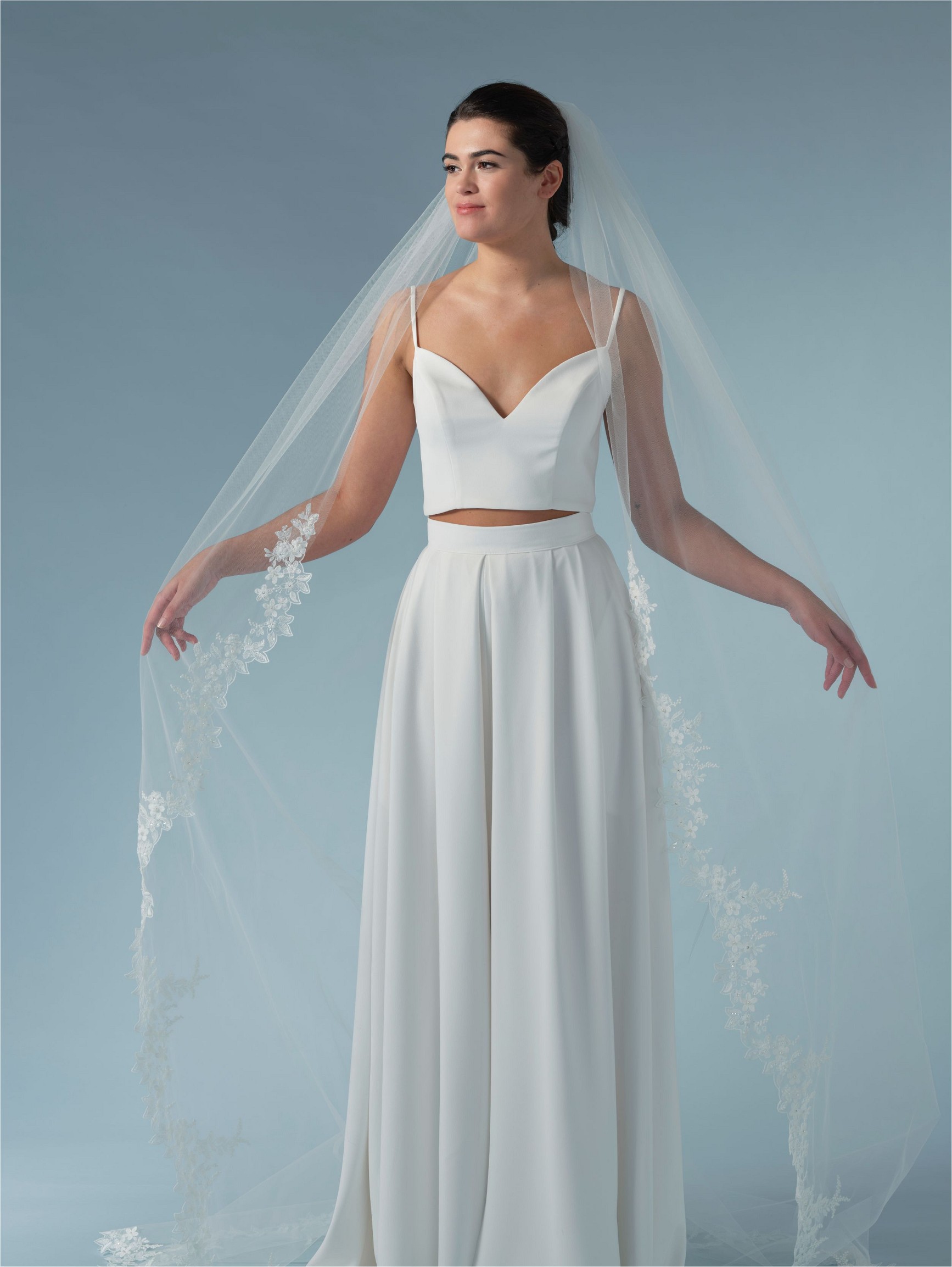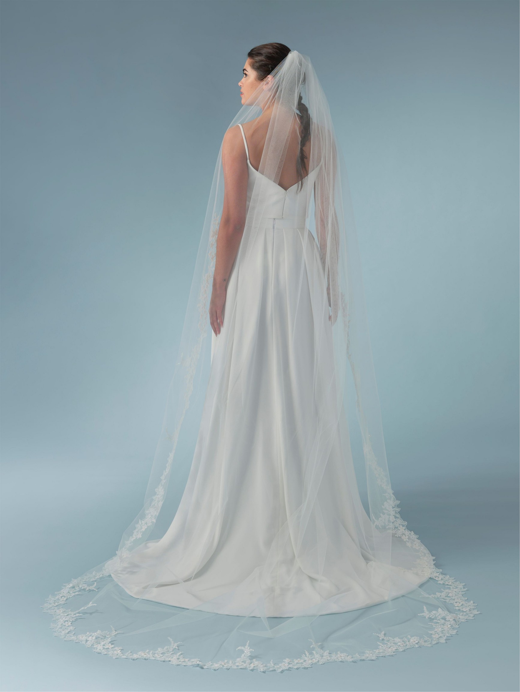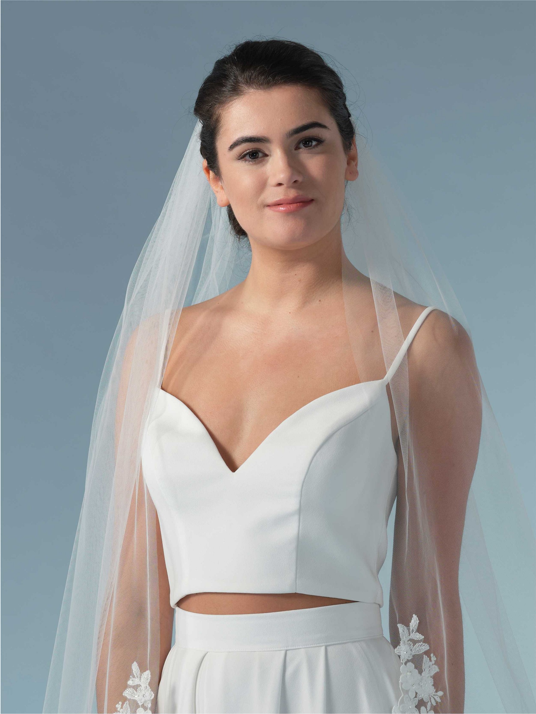 Μονό πέπλο σε τούλι σε συνδυασμό από κεντημένα πολυτελή λουλούδια σε μοτίβο μαζί με πούλιες
