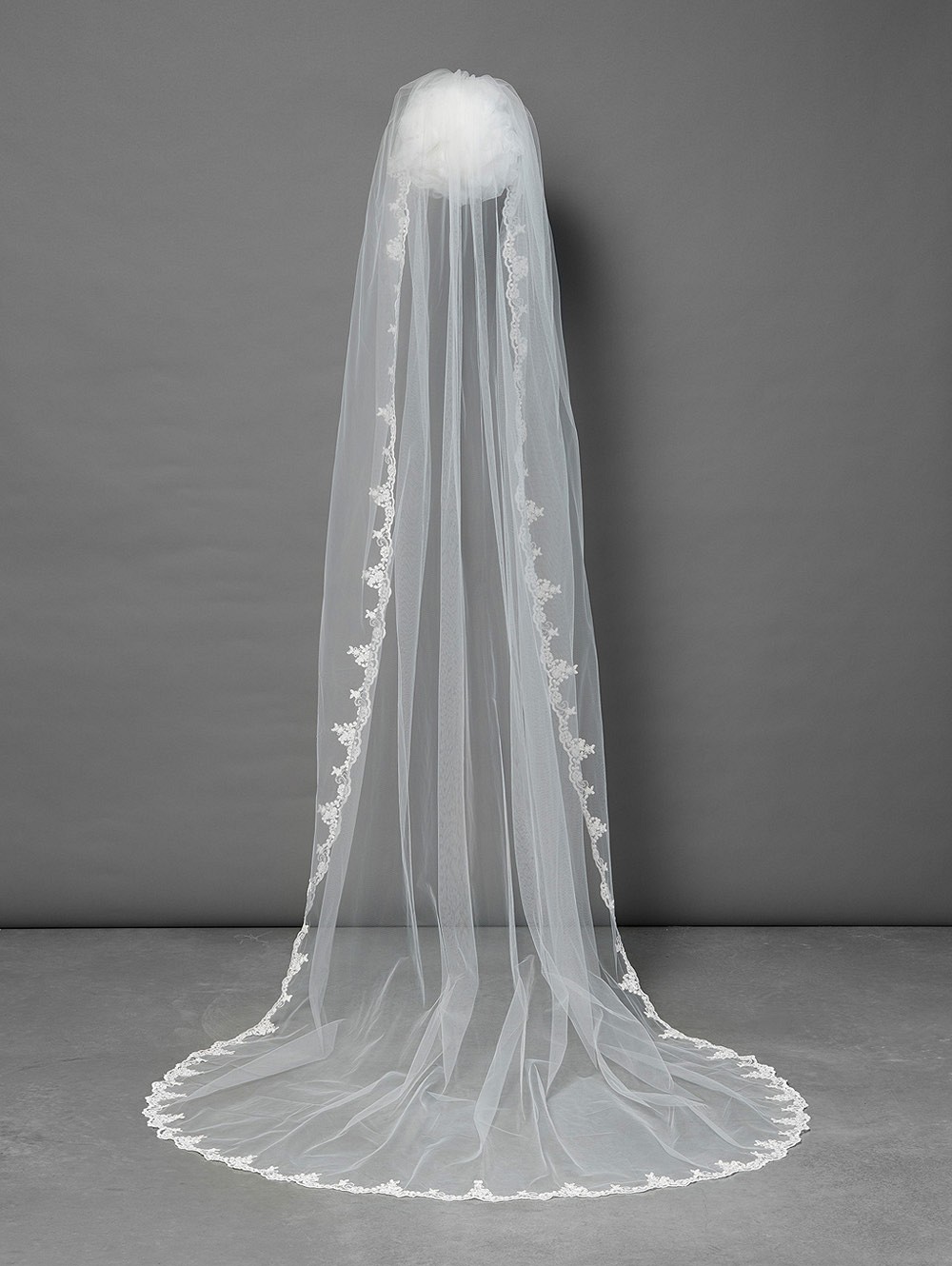 Μονό πέπλο σε τούλι σε συνδυασμό από κεντήματα σε φλοράλ μοτίβο