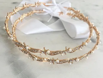 Μάθετε περισσότερα για το προϊόνΧειροποίητα στέφανα σε αντικέ χρυσό χρώμα με λαμπερά λευκά μαργαριτάρια 5 χιλιοστών και πολύτιμους κρυστάλλους.